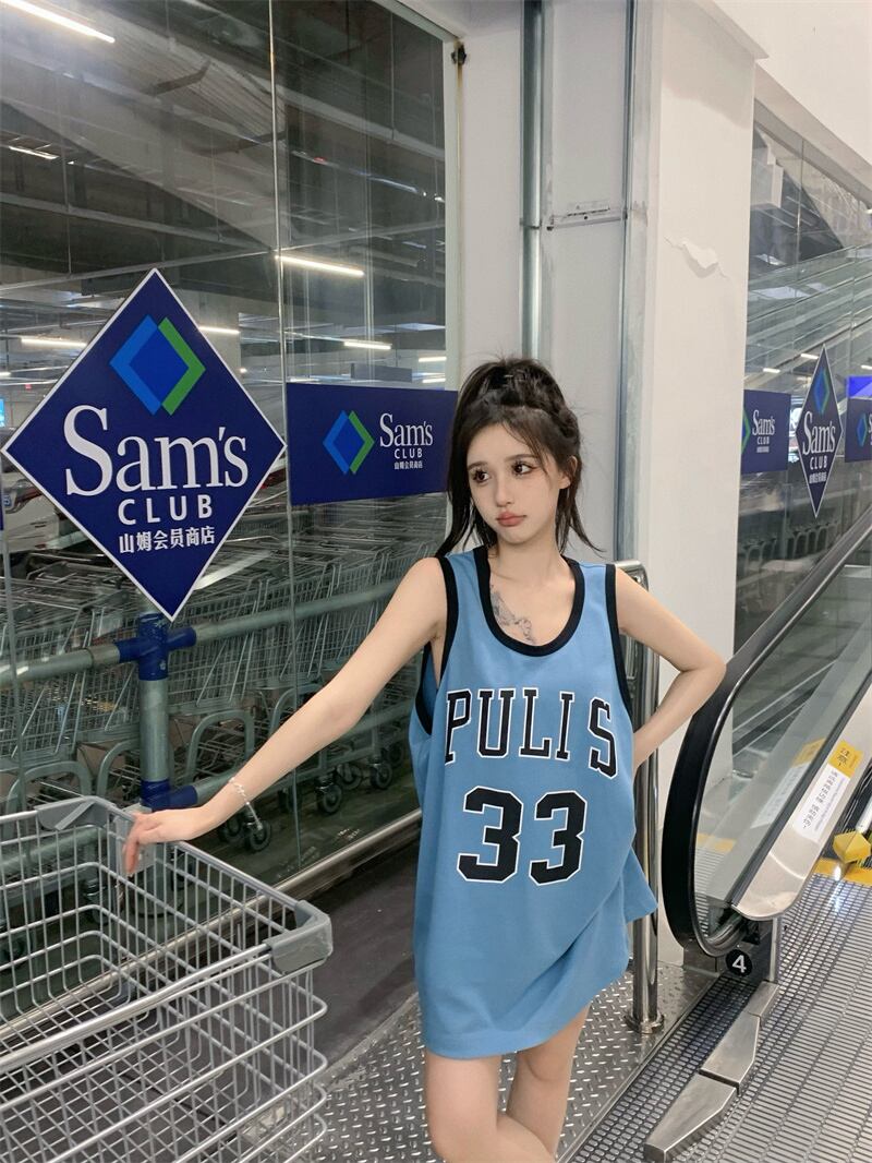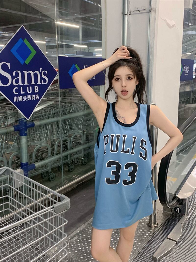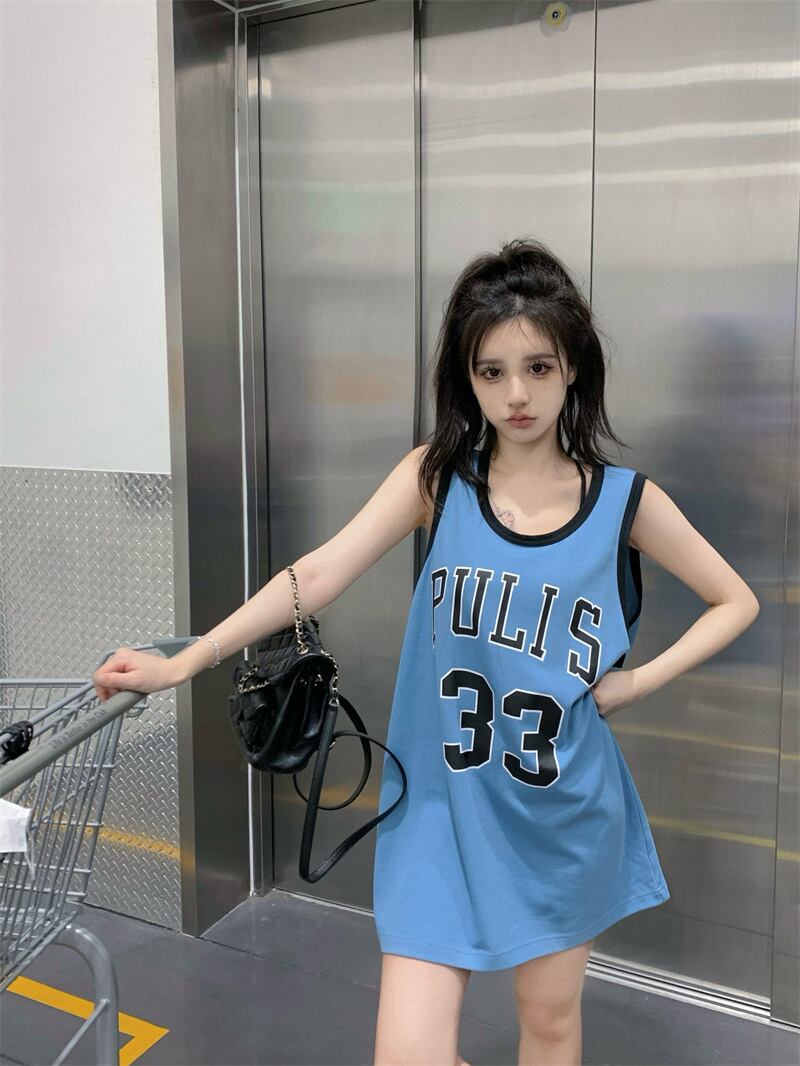 スポーツノースリーブベストTシャツレディースサマーコットンブルースウィートスパイスガールアルファベットプリントルーズミドル丈トップ 大人ガーリー キュート カジュアル 夏物 bstraw30401289388 | beaute25