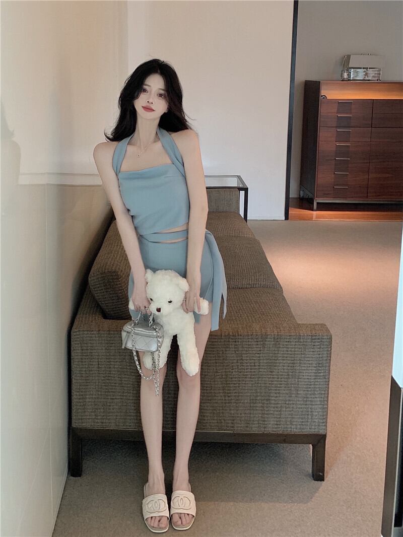 甘い女の子セクシーな純粋な欲望キャミソール女性の夏のスーツハイウエストスプリットカジュアルスカートツーピース ハイウェスト 大人ガーリー スウィート キュート サマー 夏物 ピュア bstraw53717553029 | beaute25