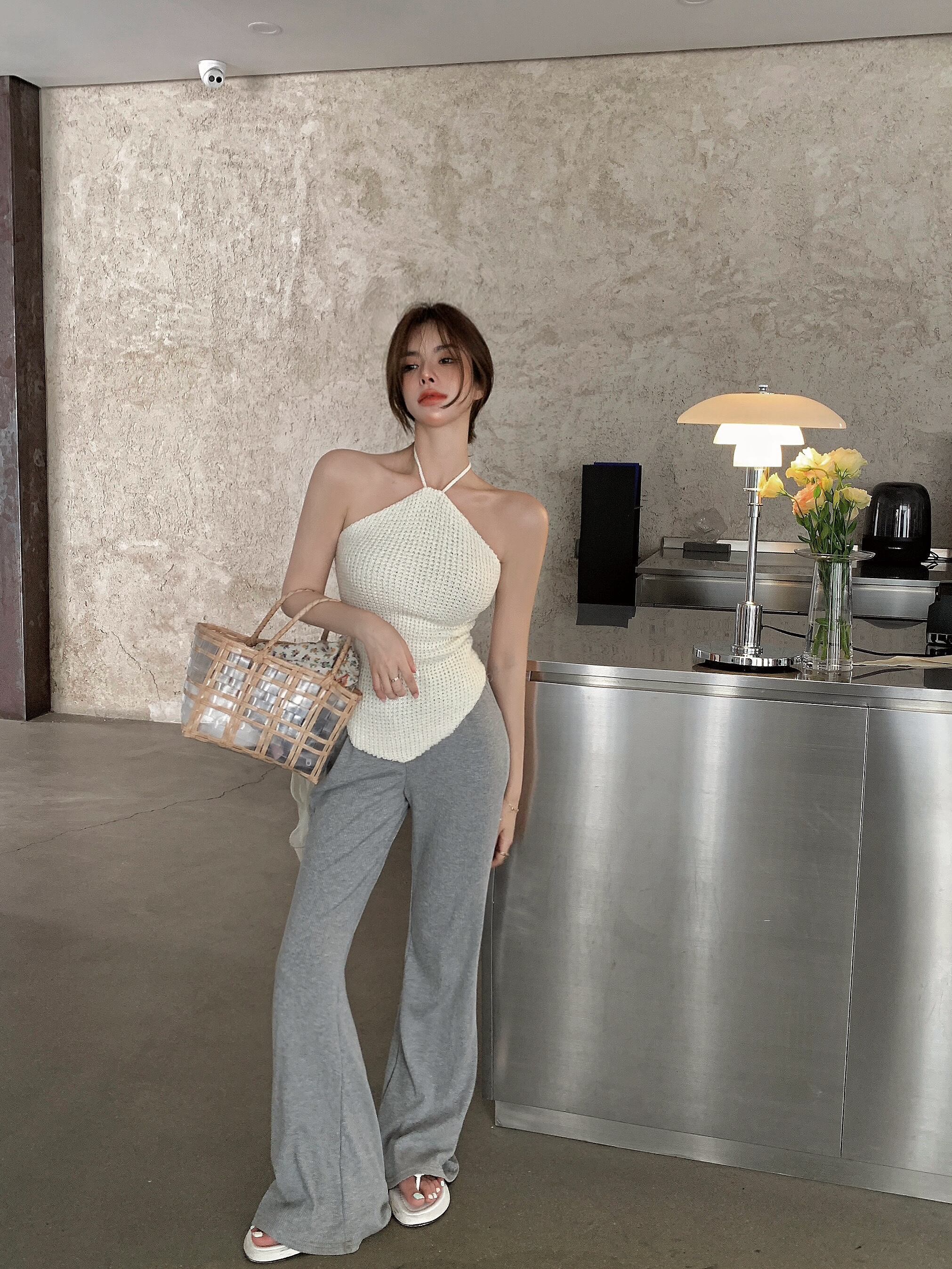 甘い女の子ホルターネックニットキャミソールベスト女性の夏の純粋な欲望白セクシーなスリムトップ ホワイト 大人ガーリー スウィート キュート カジュアル サマー 夏物 ピュア bstraw60049833500 | beaute25