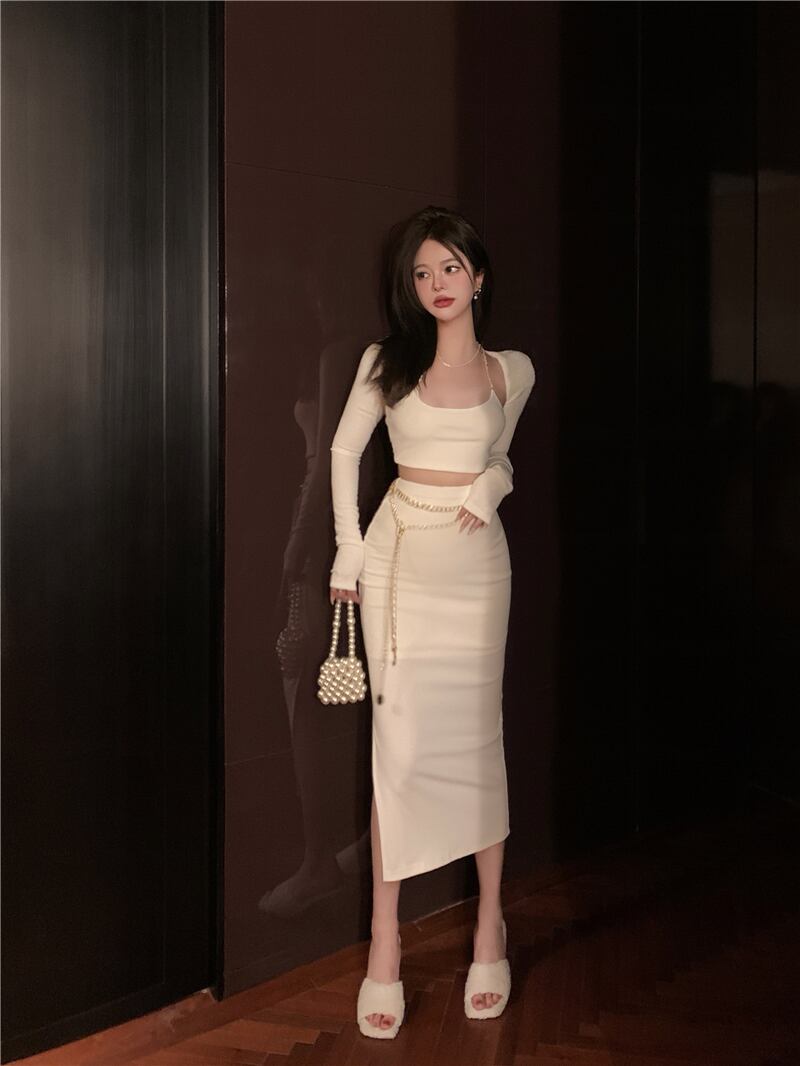 スウィートスパイスガールズチェーンキャミソールベストサマーピュアデザイアハンギングネックセクシーインナートップとアウタースモックツーピースセット 大人ガーリー キュート カジュアル 夏物 bstraw27381329156 | beaute25