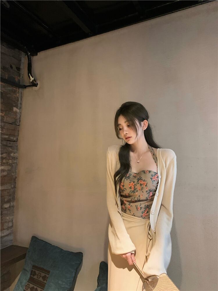 花柄ホルターネックキャミソール女性夏フレンチ優しいスタイル甘くてスパイシーなセクシーアウターウェアインナーボトミングシャツトップ 大人ガーリー スウィート キュート カジュアル サマー 夏物 bstraw74448747698 | beaute25
