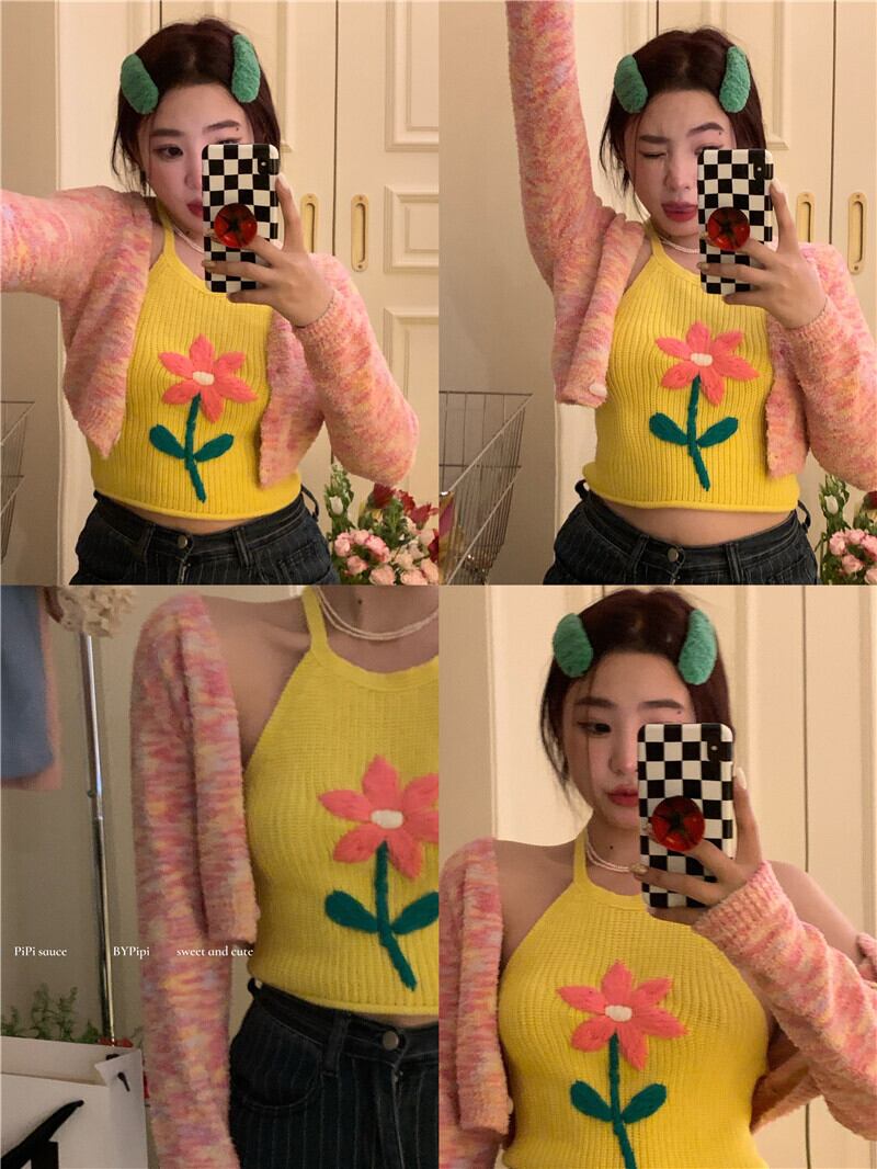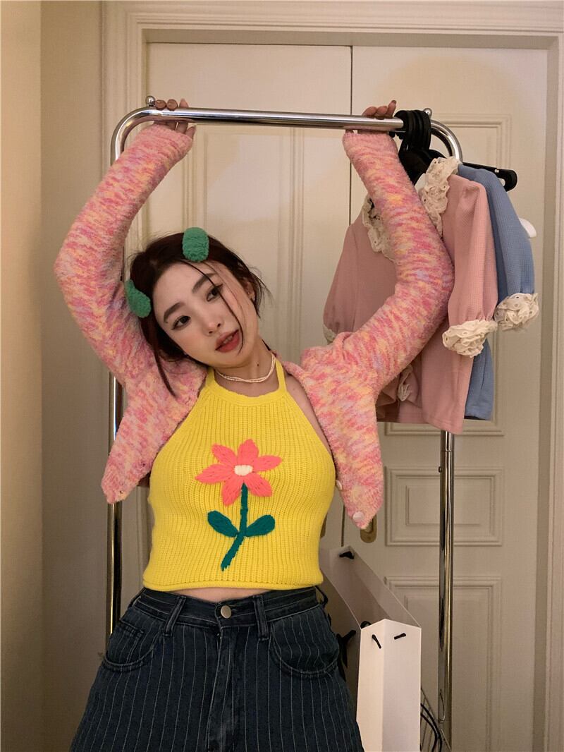 ピュアデザイアスタイルスウィートショートニットキャミソールベストレディースサマーホルターネックノースリーブボトミングシャツトップ内外着用 大人ガーリー キュート カジュアル 夏物 bstraw44771429344 | beaute25