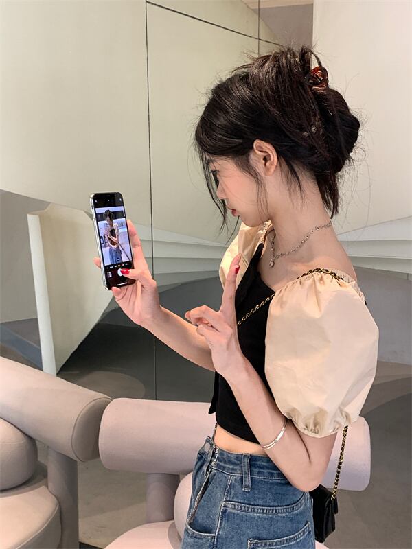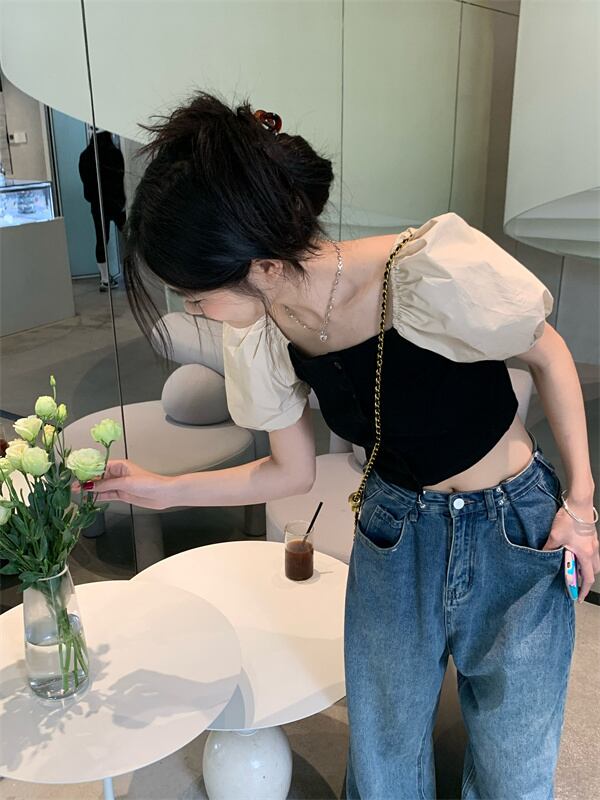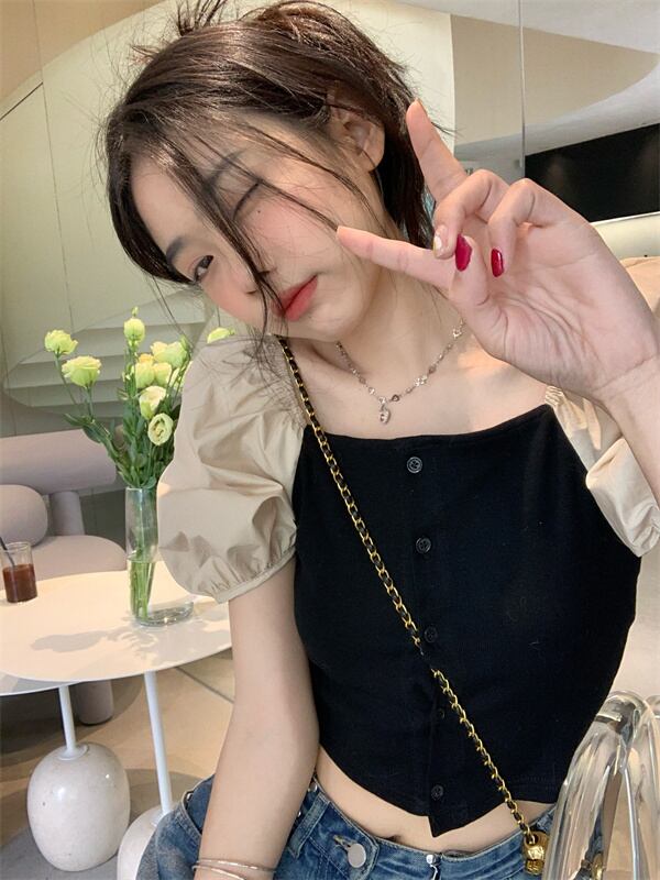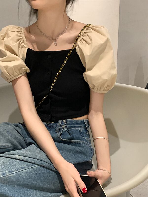 スパイスガールズスクエアネックステッチ半袖シャツレディースサマーショートスモールシャツパフスリーブシックなトップス ハーフスリーブ 夏物 スクウェア bstraw91332219411 | beaute25
