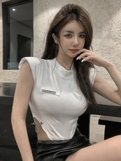 ピュアデザイアセクシースリムノースリーブTシャツサマースウィートスパイスガールシャムショーウエストセンセーションニッチトップボトムシャツ 大人ガーリー キュート カジュアル 夏物 bstraw61373984305 | beaute25