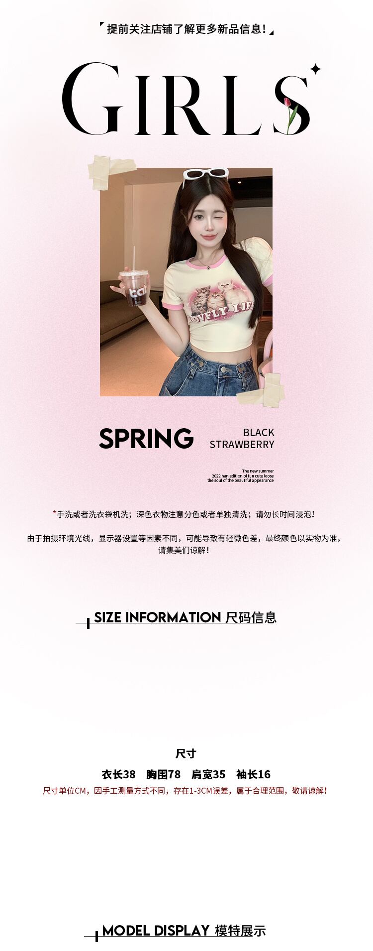 猫Tシャツ女性夏スモールスウィートスパイスガールフロントショルダープリントスリムフィットスリムスモール半袖トップス ショート ハーフスリーブ 大人ガーリー キュート カジュアル サマー 夏物 bstraw72307128147 | beaute25