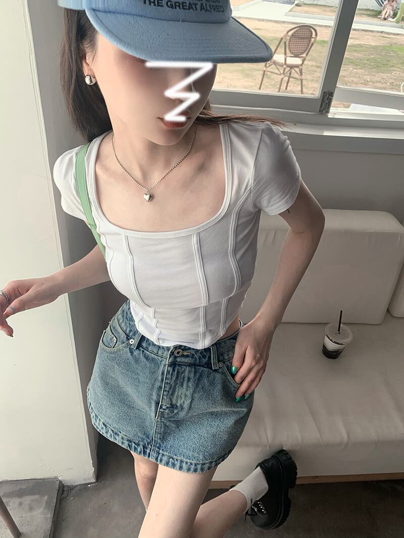 フェイクツーピースデニムスカートパンツウィメンズ2022夏新作ハーフスカートレトロスモールハイウエストシンスカート ハイウェスト サマー 夏物 bstraw57300399041 | beaute25