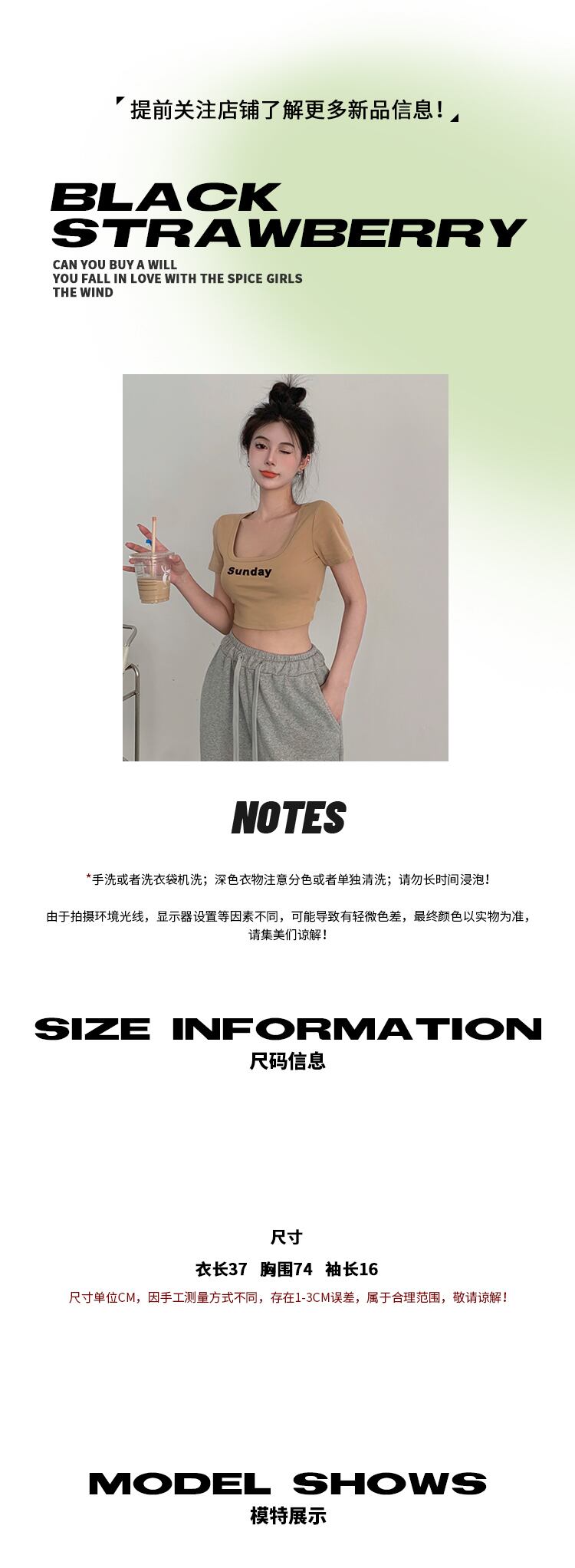 ホットスクエアネック半袖Tシャツレディースサマーブラックタイトフィット薄くて短いデザインのニッチトップボトミングシャツ ショート 夏物 スクウェア bstraw56469801499 | beaute25