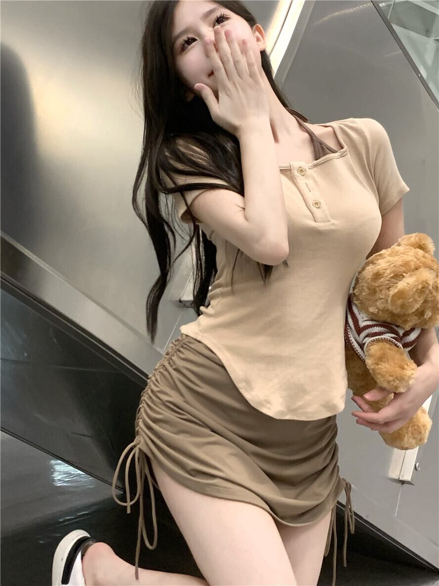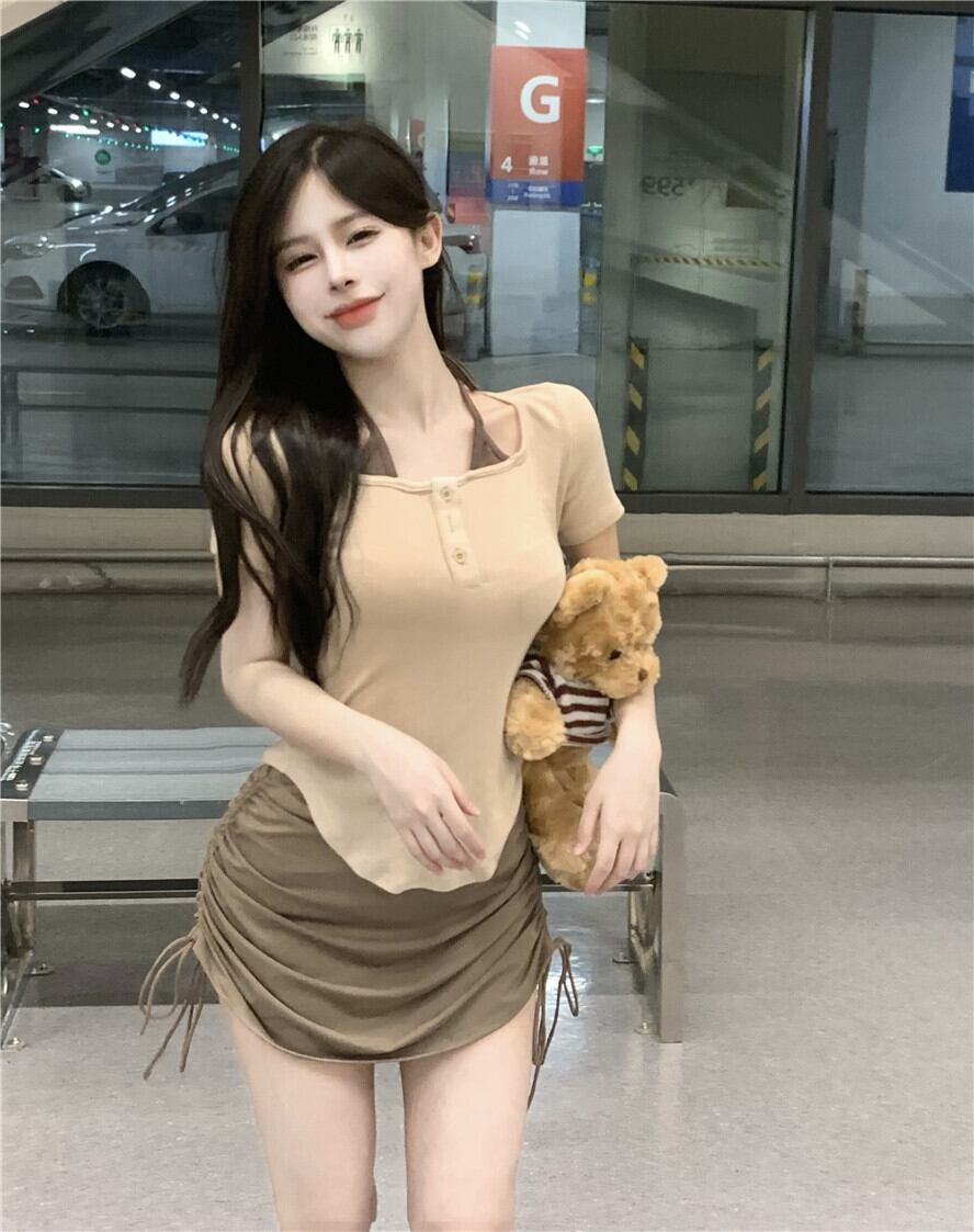 ホット不規則なサスペンダーホルターネック半袖Tシャツ女性の夏の純粋な欲望偽のツーピースタイトフィット薄いトップボトミングシャツ サマー 夏物 ピュア bstraw94323868298 | beaute25