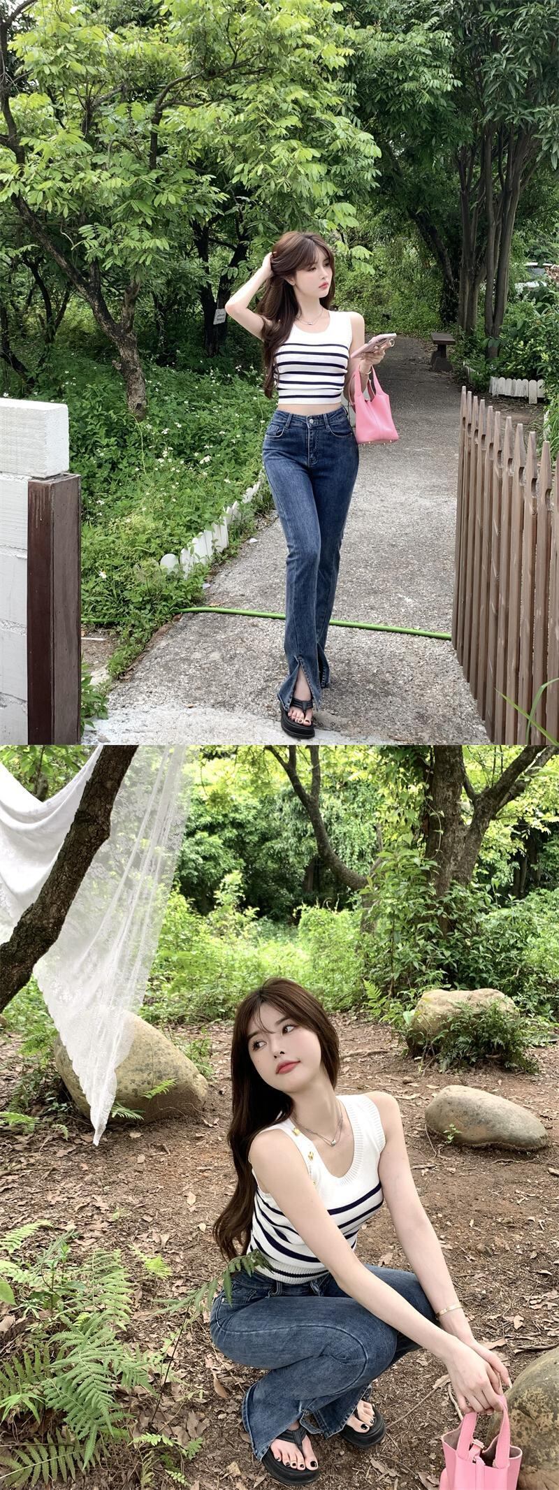 色:青と白のベスト,ベストドレス,半袖ドレス