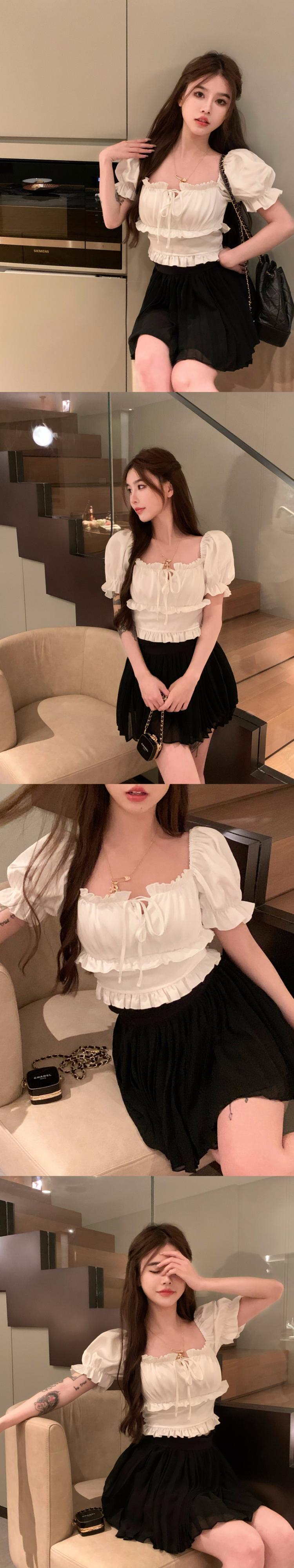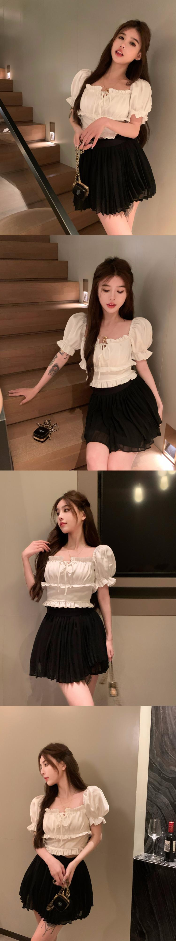 スクエアネックサテンパフスリーブシャツレディースサマーフレンチフリルスリムフィットとスリムショートデザインニッチトップ ラッフル 夏物 スクウェア bstraw50332651466 | beaute25