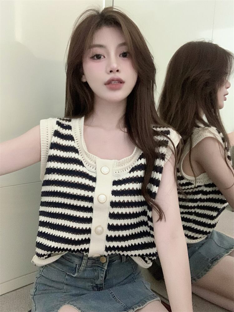 甘いスパイスガールズオフショルダーノースリーブニットスリングベスト夏の純粋な欲望ゆるい小さな男性 大人ガーリー スウィート キュート カジュアル サマー 夏物 ピュア bstraw88812859617 | beaute25