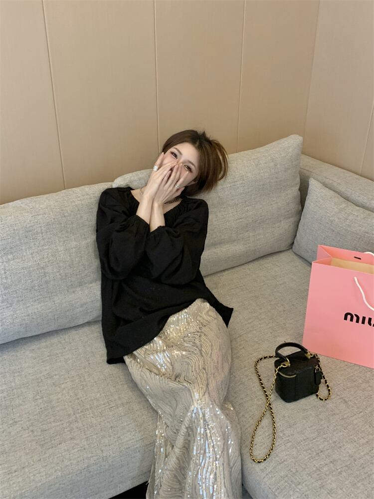 色:ブラックトップ,明るいスカート