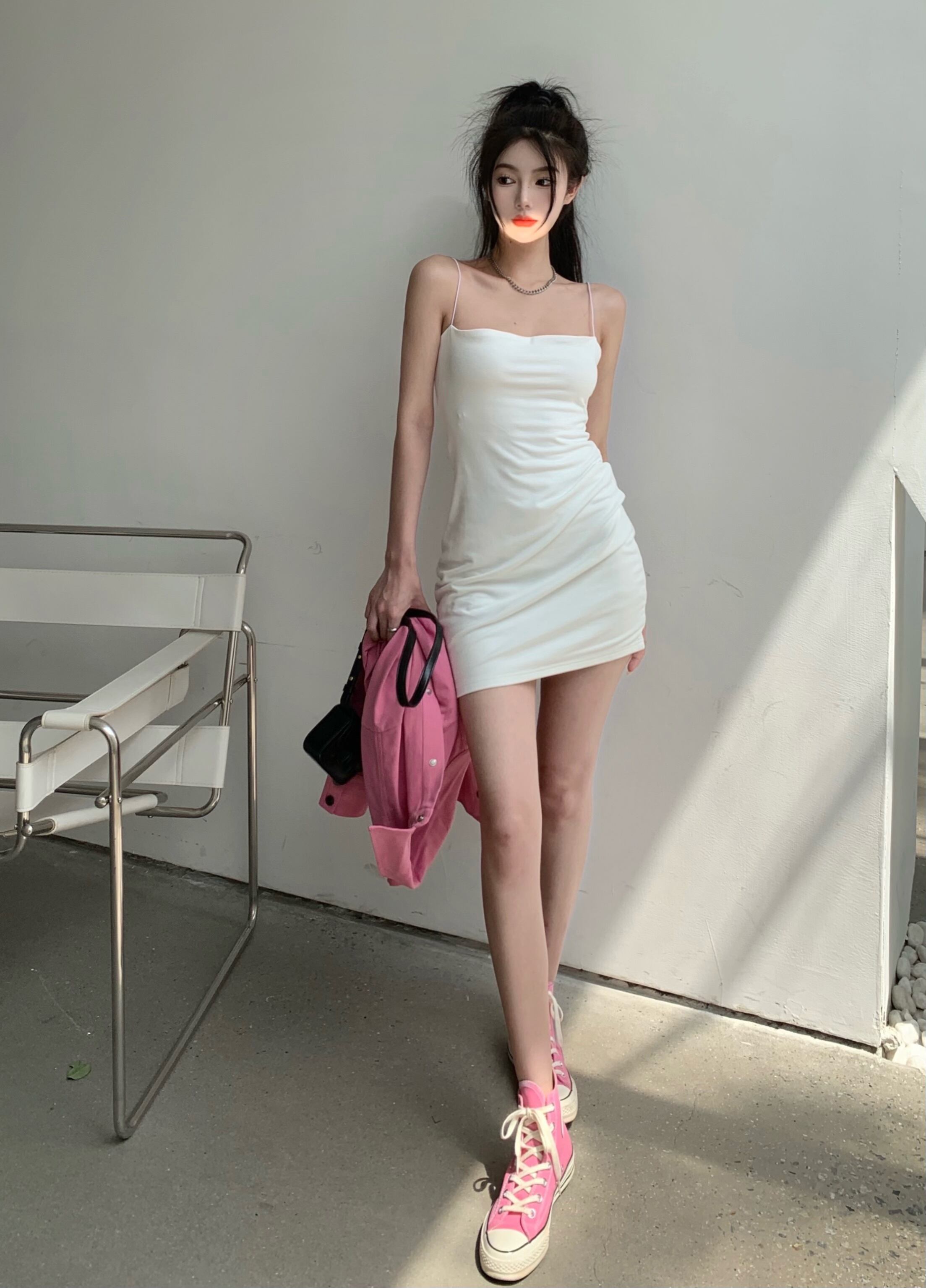白いサスペンダードレス女性の夏の純粋な欲望セクシーなショートスカート小さな気質ウエストウエスト薄いバッグヒップスカート ホワイト サマー 夏物 ピュア bstraw90308517309 | beaute25