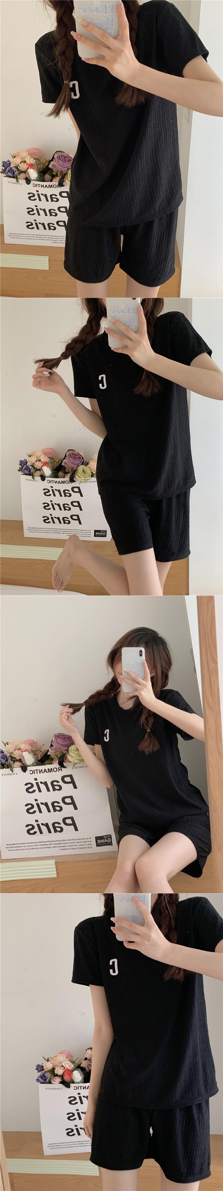 緑のホームウェアスーツの女性の夏の薄いセクションは、パジャマを着ることができますパジャマ半袖Tシャツカジュアルショーツツーピースセット サマー 夏物 ブルマー グリーン bstraw98067985852 | beaute25