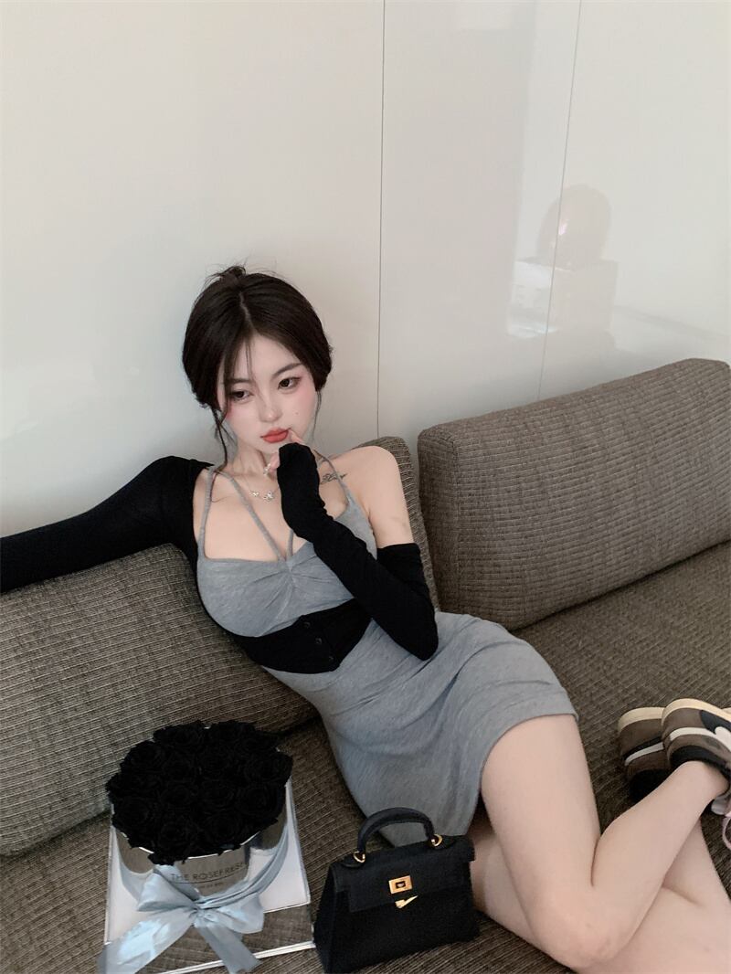 色:ケンビーンカラーサスペンダースカート,グレーのドレス,黒い日焼け止め