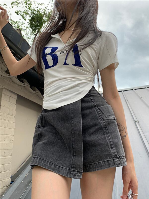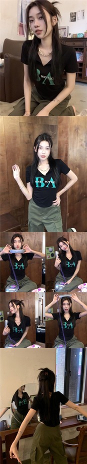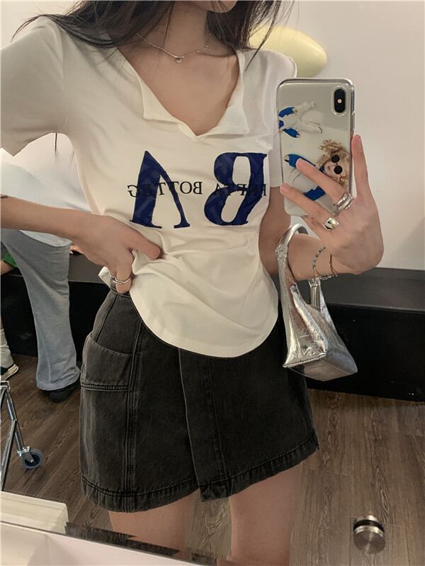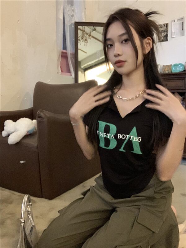 黒の半袖Tシャツ女性の夏の純粋な欲望スリムフィットと薄いショートVネックデザインのニッチトップボトミングシャツ ブラック サマー 夏物 ピュア bstraw47476985774 | beaute25