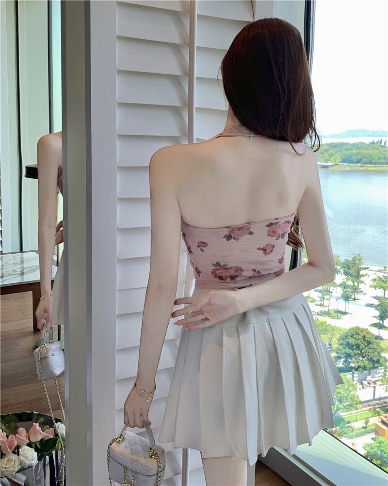 ローズプリントホルターネックキャミソールレディースサマーフレンチスウィートベイビーセクシーアウターウェアインナーボトミングトップ 大人ガーリー キュート カジュアル 夏物 bstraw51337586520 | beaute25