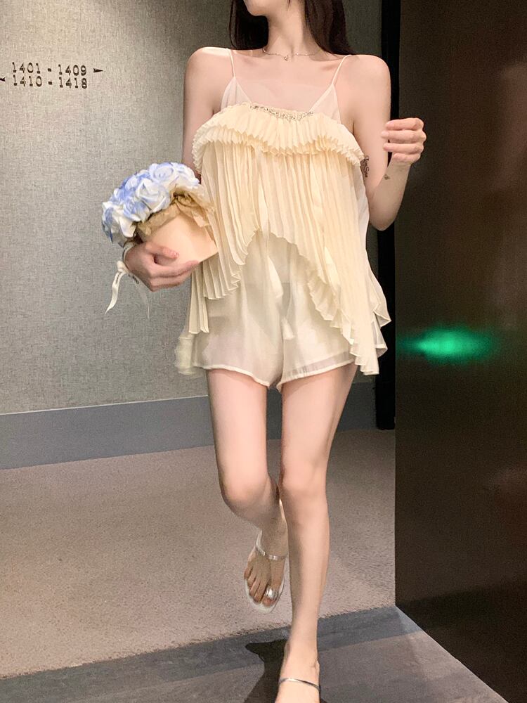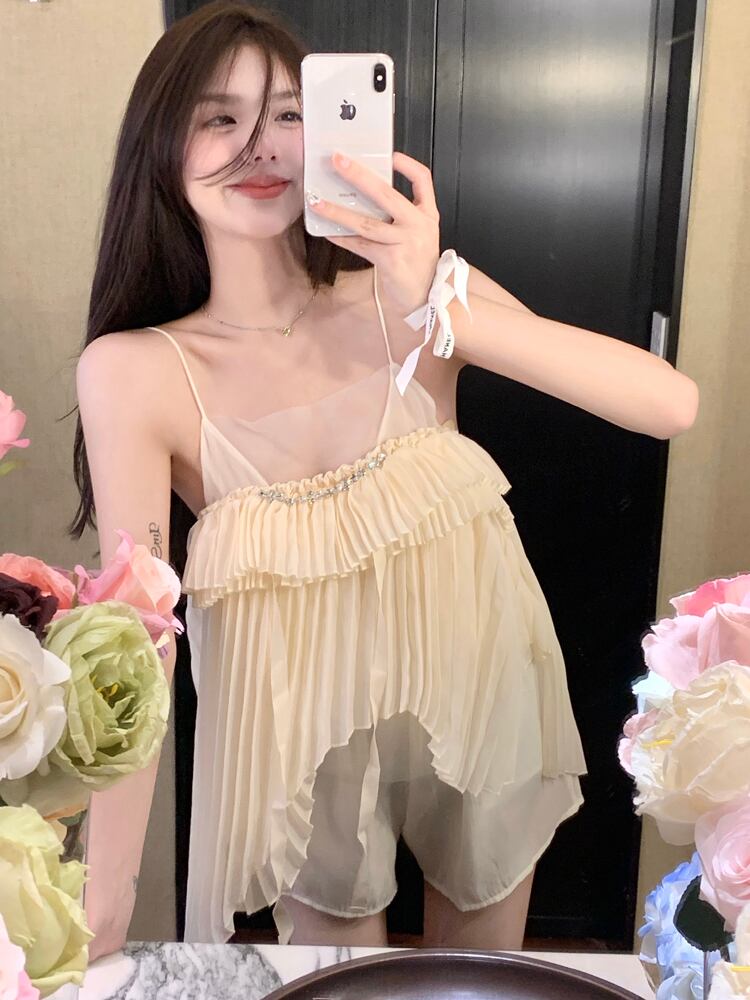 ホワイトフリルキャミソールベスト女性夏スウィートシフォンフェアリーデザインセンス不規則トップウェア 大人ガーリー キュート カジュアル サマー 夏物 bstraw85373253305 | beaute25