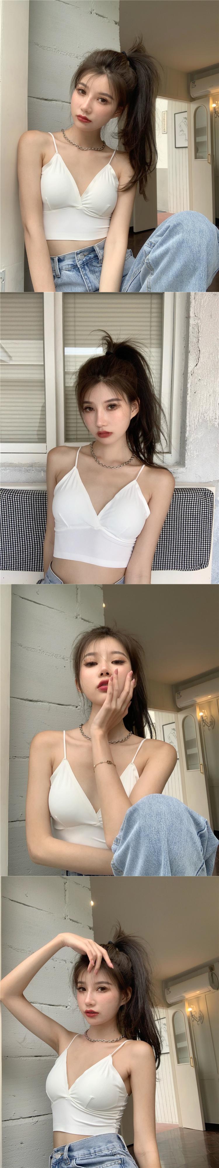 胸パッドピンクの甘い純粋な欲望風ショートラップ胸の内側と外側の摩耗ボトミングトップと小さなキャミソール女性の夏 大人ガーリー スウィート キュート カジュアル サマー 夏物 ピュア bstraw90980796689 | beaute25