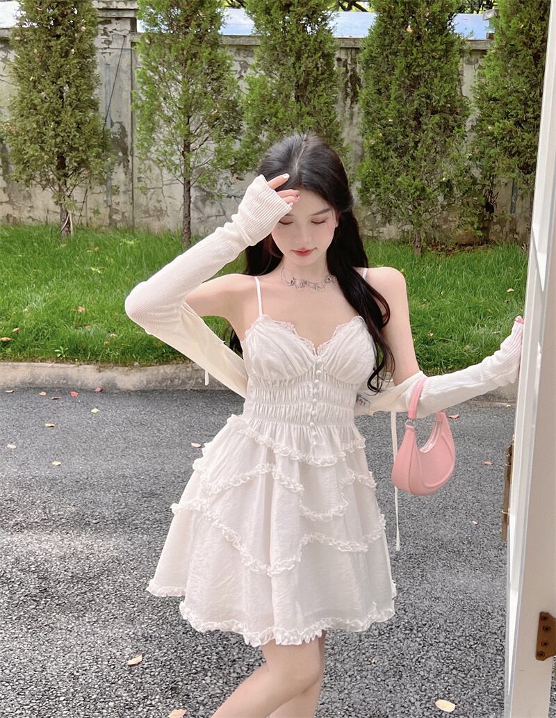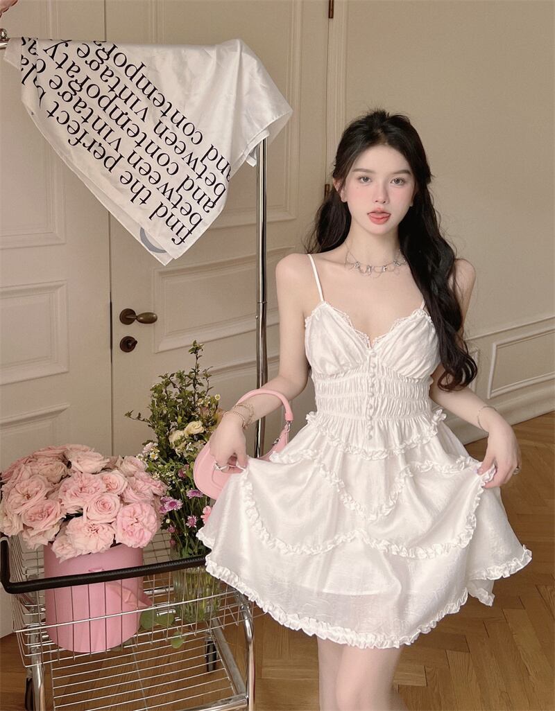 白カビエッジサスペンダードレス女性夏オープンバック甘い初恋Vネックセクシーウエストスリムショートスカート ホワイト 大人ガーリー スウィート キュート カジュアル サマー 夏物 bstraw53062231843 | beaute25