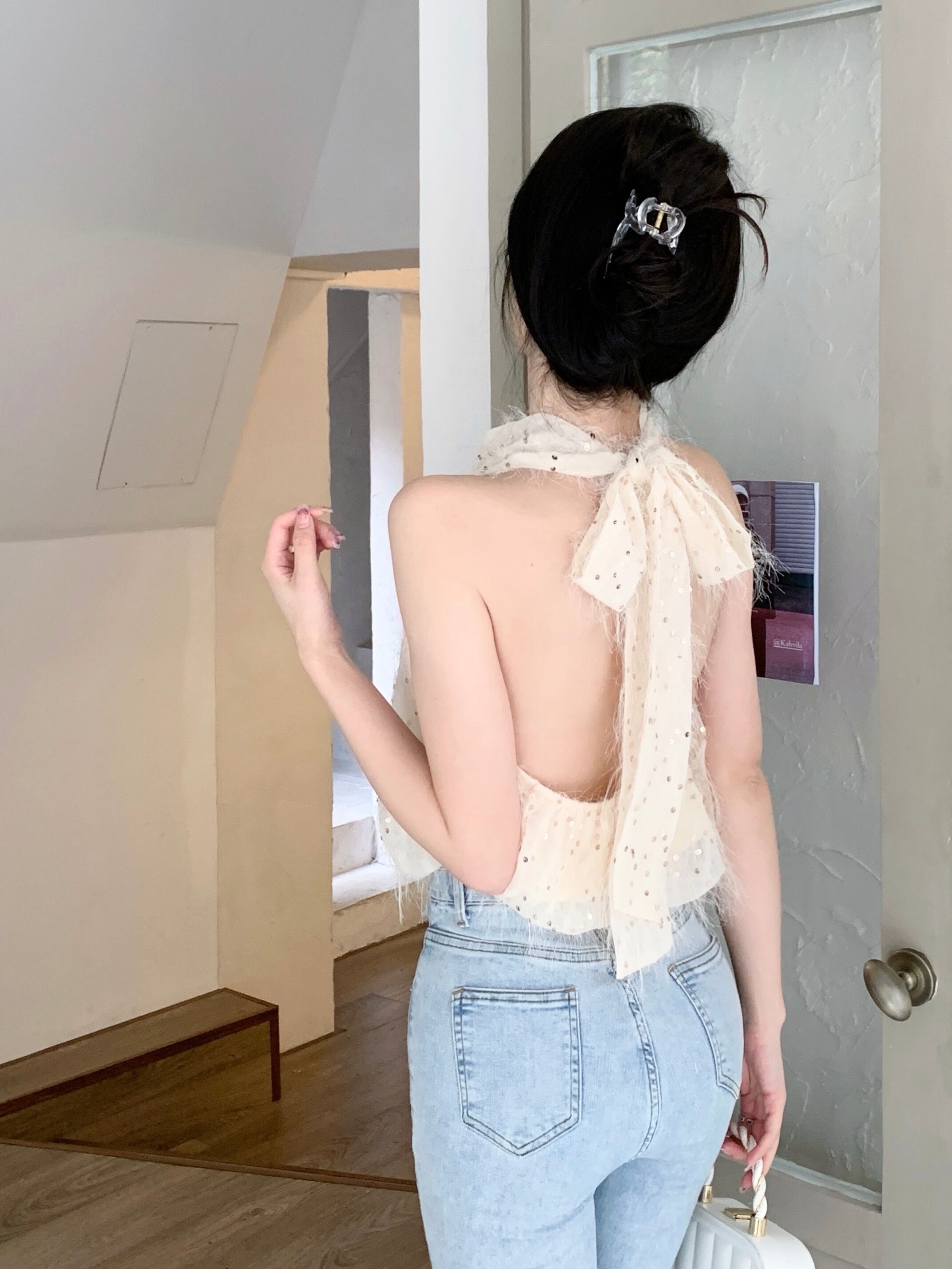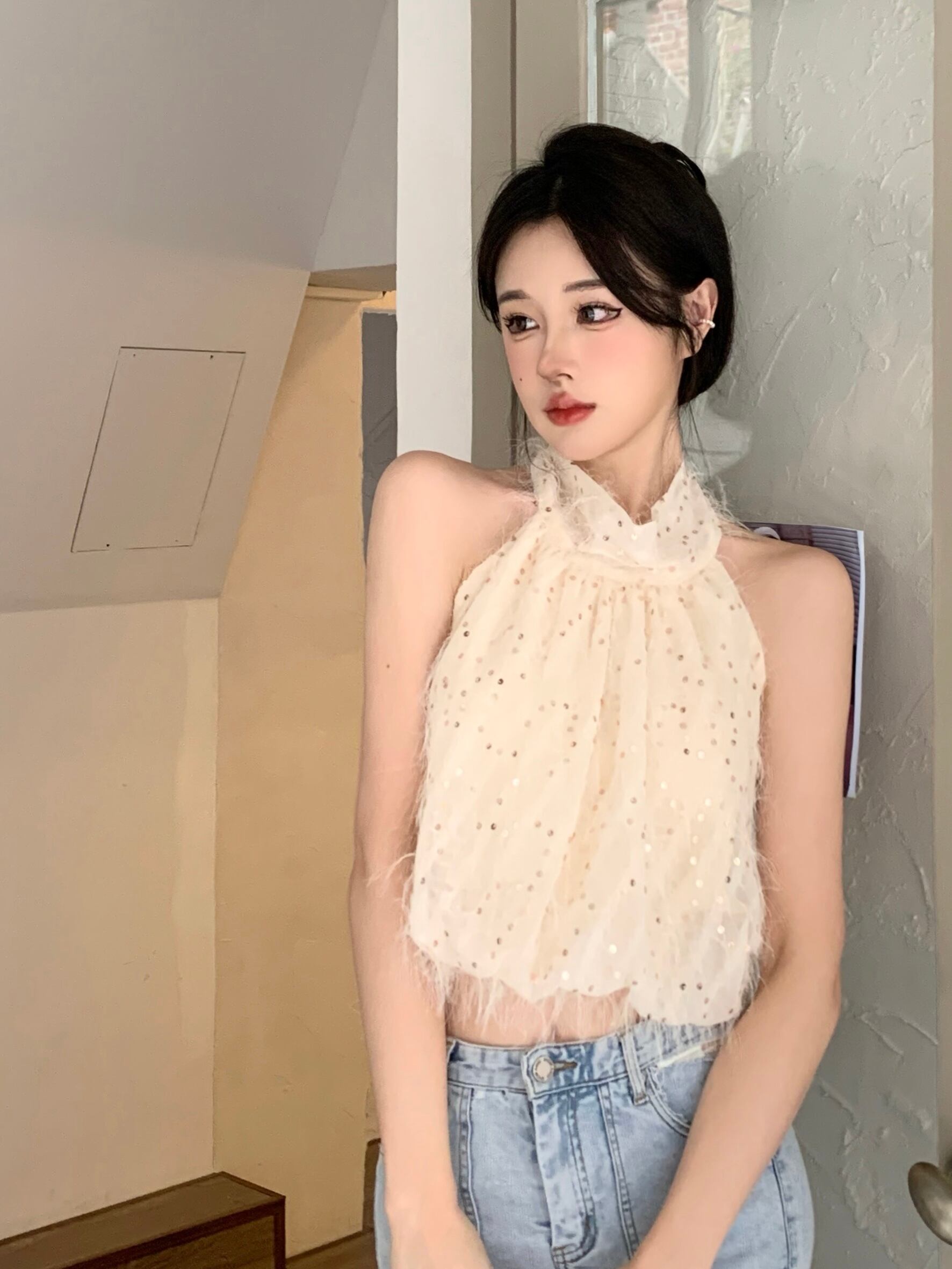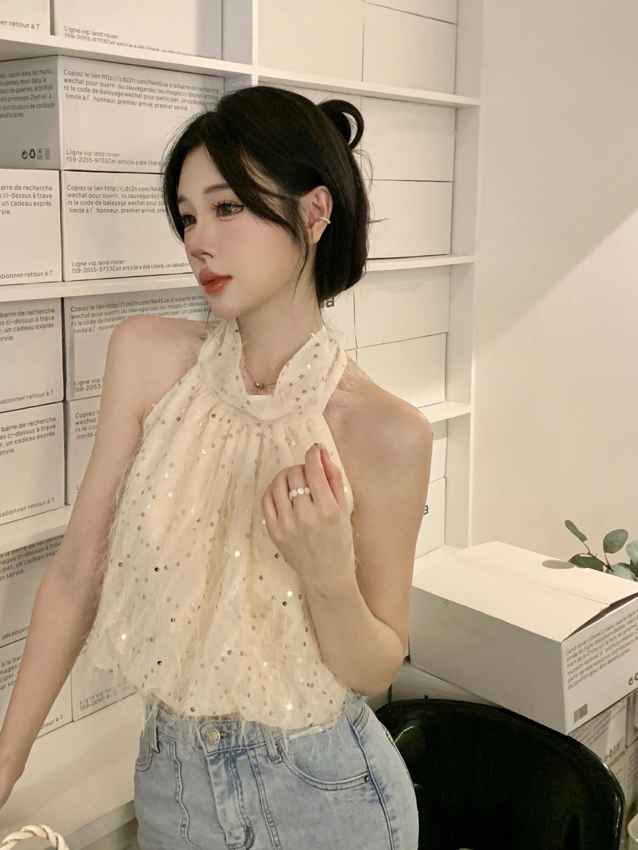 アプリコットノースリーブオフショルダーセクシーキャミソールベスト女性の夏の甘い純粋な欲望首を掛けてトップを着用 大人ガーリー スウィート キュート カジュアル サマー 夏物 ピュア bstraw87369948629 | beaute25