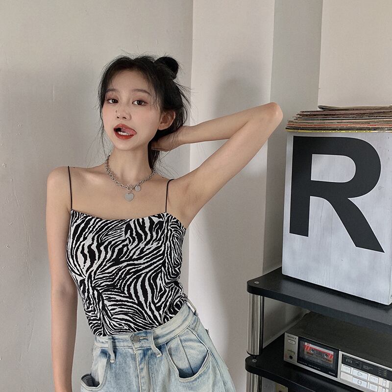 ヨーロッパとアメリカのキャミソール女性の夏のセクシーなタイトフィットショートゼブラプリントアウターウェアインナーボトミングシャツトップ サマー 夏物 ヨーロピアン bstraw45505747667 | beaute25