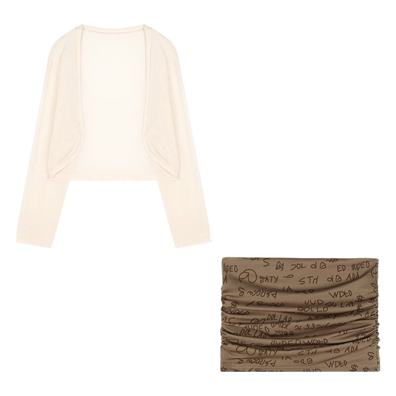 色:ベージュカーディガン,コーヒーカラーのチューブトップ