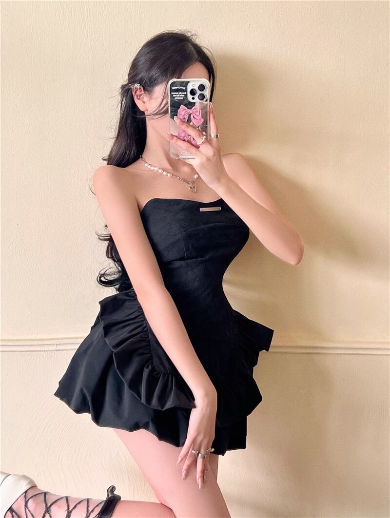甘い女の子黒キャミソール女性の夏のショートスタイル純粋な欲望タイトフィットデザインセンスニッチ ブラック 大人ガーリー スウィート キュート カジュアル サマー 夏物 ピュア bstraw12045757219 | beaute25