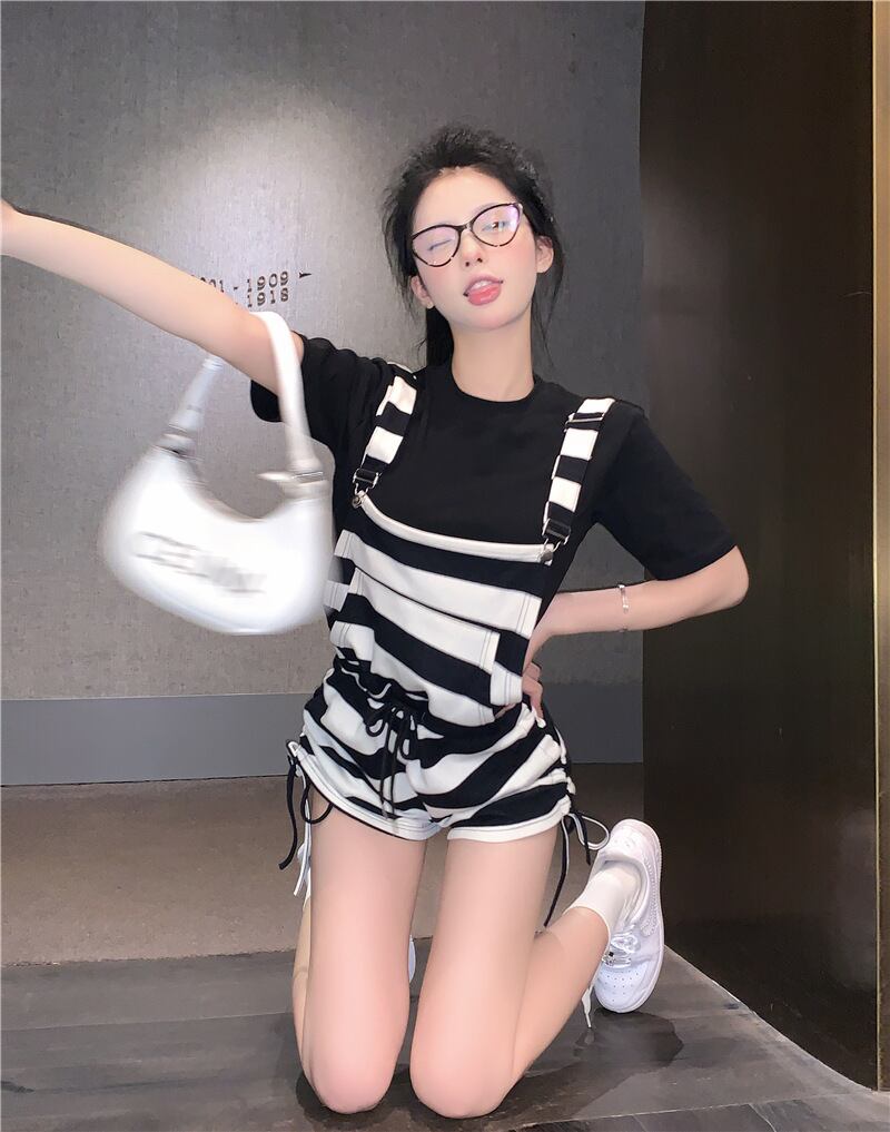 ドローストリングストライプオーバーオールレディースサマーレトロカジュアルワイドレッグショーツ薄手ハイウエストルーズストレートスリムパンツ ハイウェスト 夏物 ブルマー ワイドパンツ bstraw73895993680 | beaute25