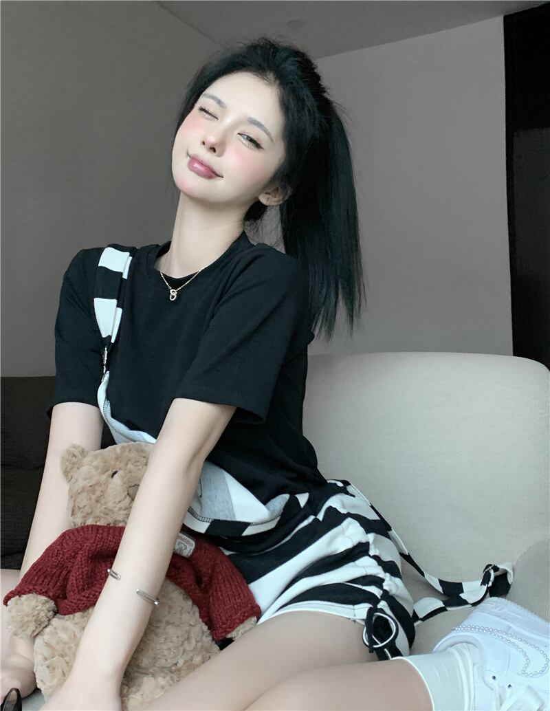 色:ブラックT,ストライプオーバーオール