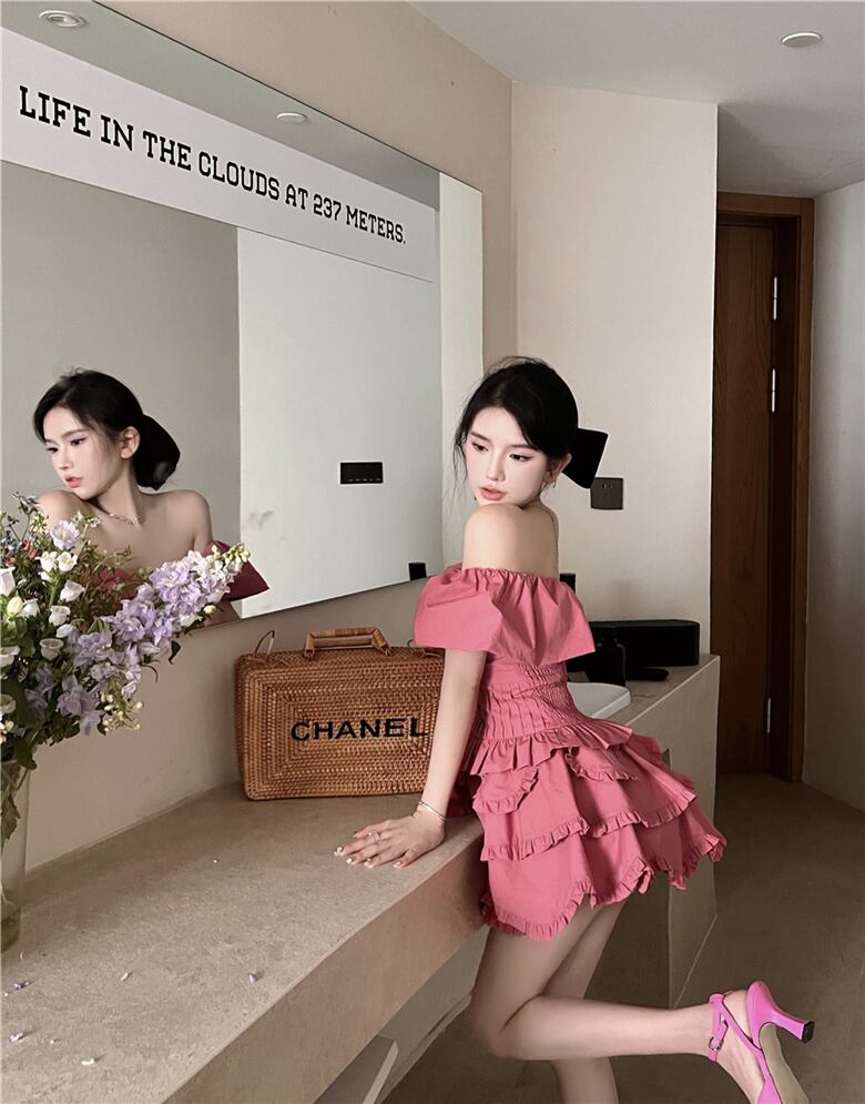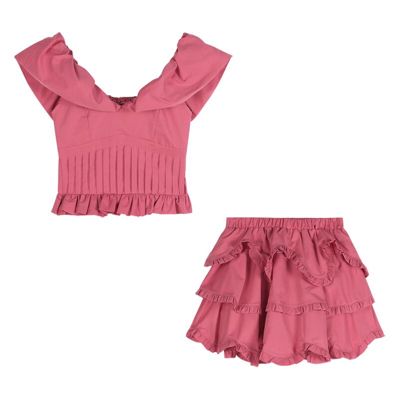 ソルトスーツ女性2022年夏新作ワンショルダースウィートウエストシャツふわふわスカートツーピースセット 大人ガーリー キュート カジュアル サマー 夏物 bstraw57453898585 | beaute25