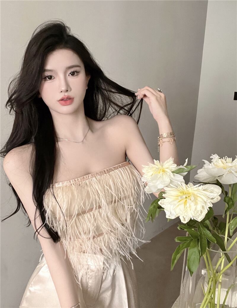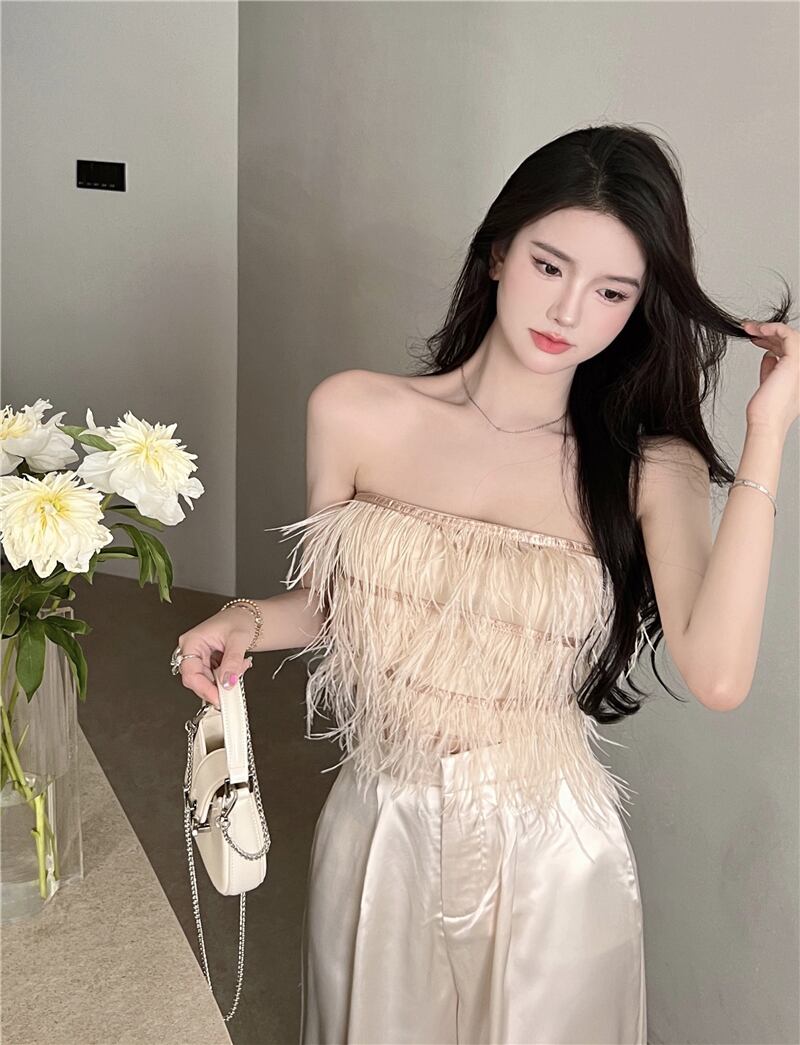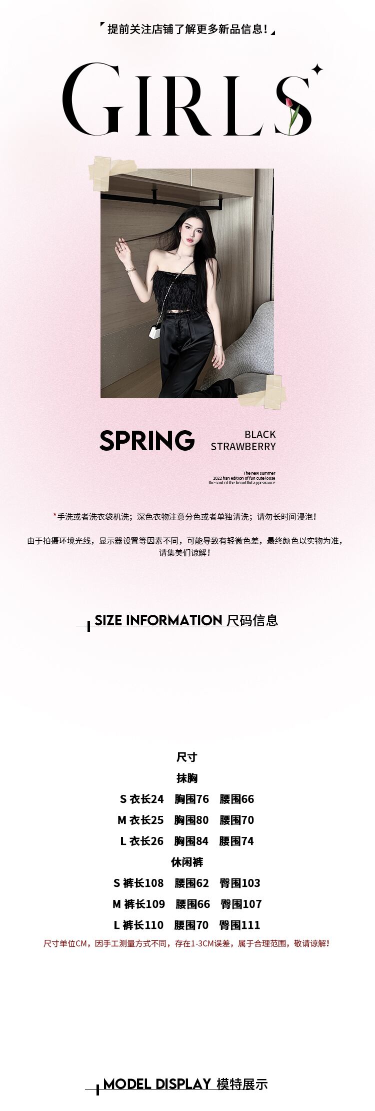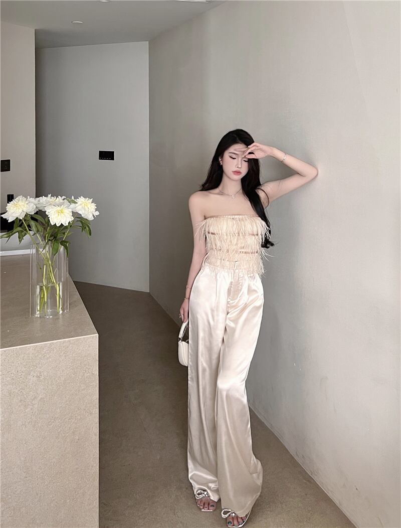 色:アプリコットチューブトップ,黒いチューブトップ,アプリコットズボン,黒いズボン