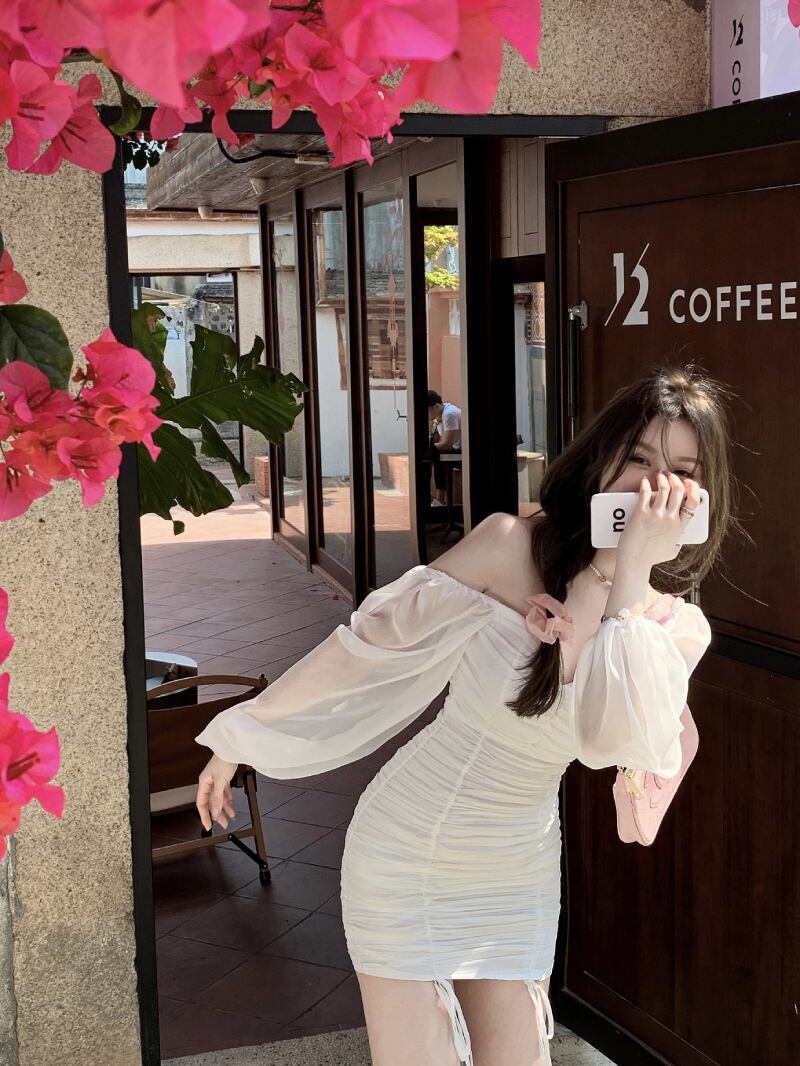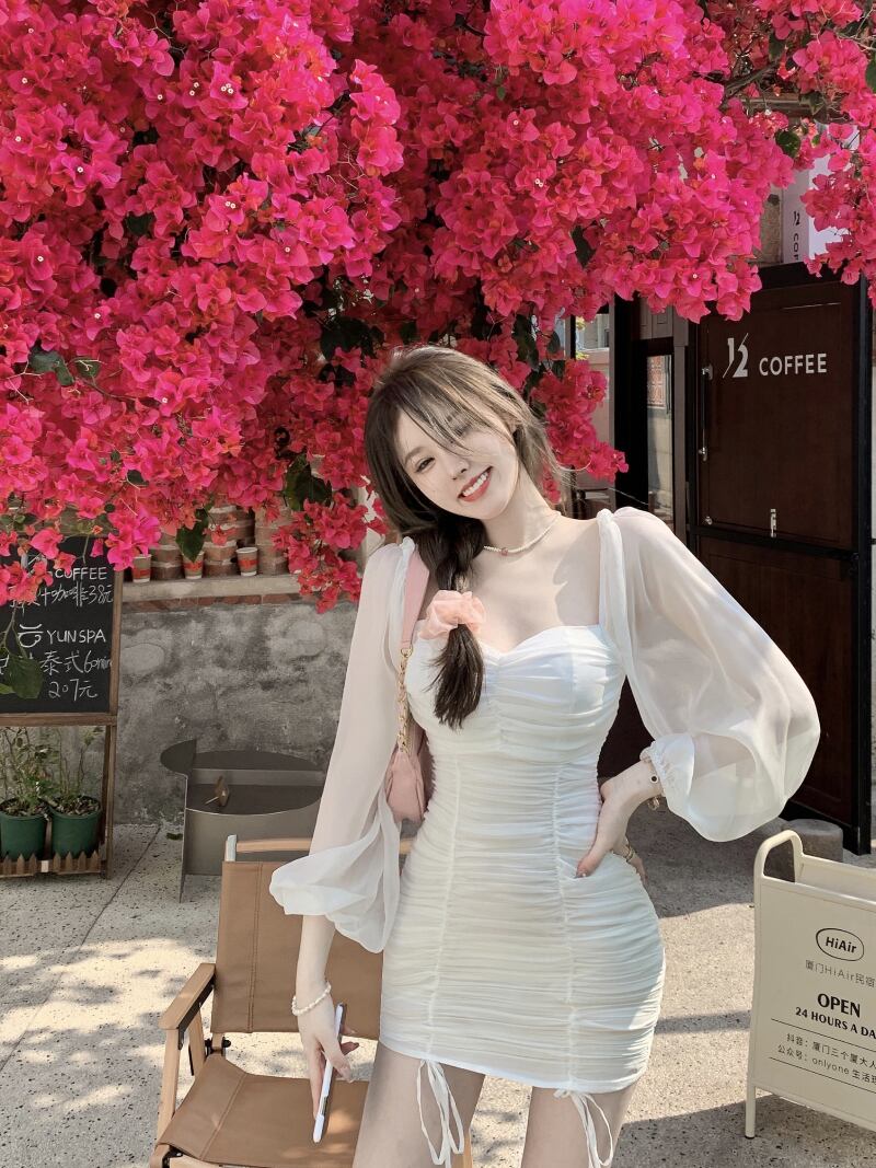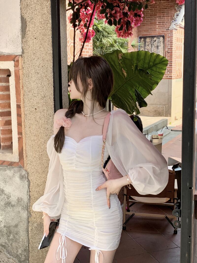 ホワイトシフォンドレスレディースフレンチ巾着タイトスカート2022年夏新作スウィートパッケージヒップボトミングスカート 大人ガーリー キュート カジュアル サマー 夏物 bstraw91155037148 | beaute25