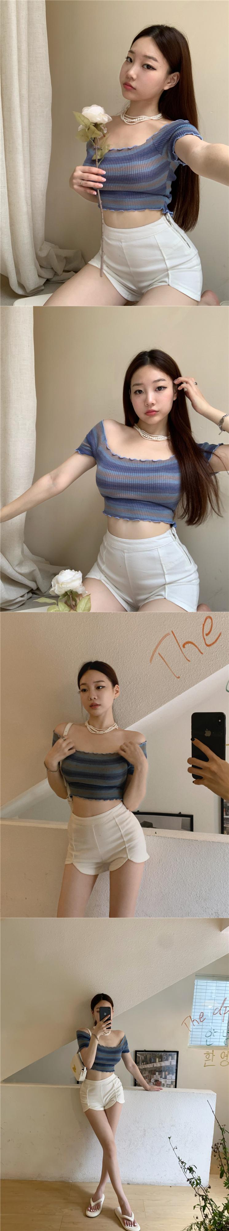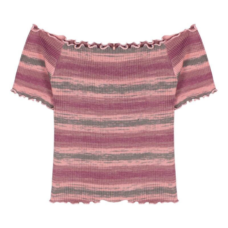 ワンショルダーニットストライプTシャツ女性インスティッドサマーカビサイドスウィートセクシースリムスリム半袖トップス 大人ガーリー キュート カジュアル 夏物 bstraw74889833226 | beaute25