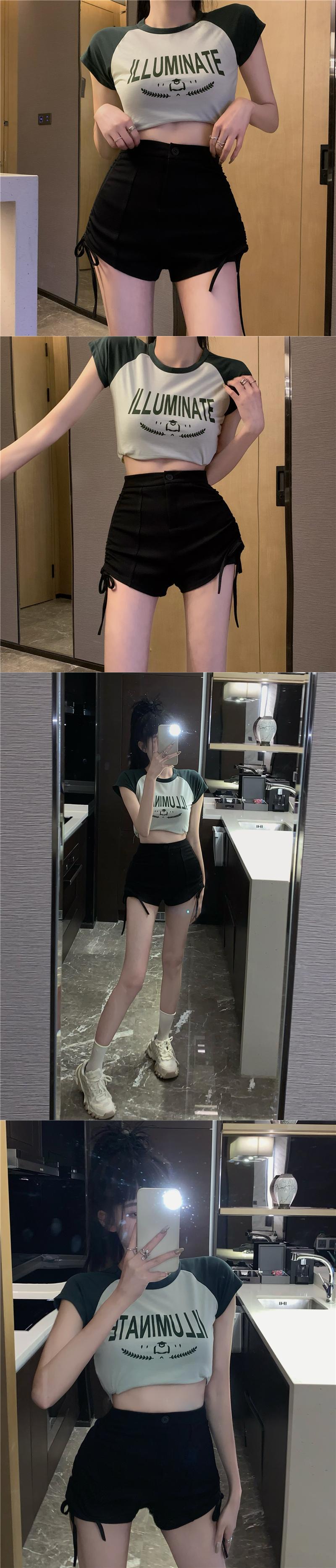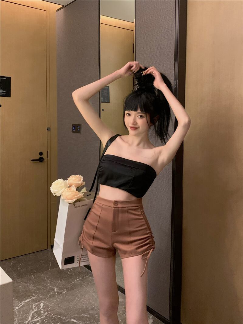 ドローストリングカジュアルパンツレディースサマーインフラッシュパンツブラックショーツハイウエストストレートスリムバッグヒップパンツ ハイウェスト 夏物 ブルマー bstraw91830236060 | beaute25