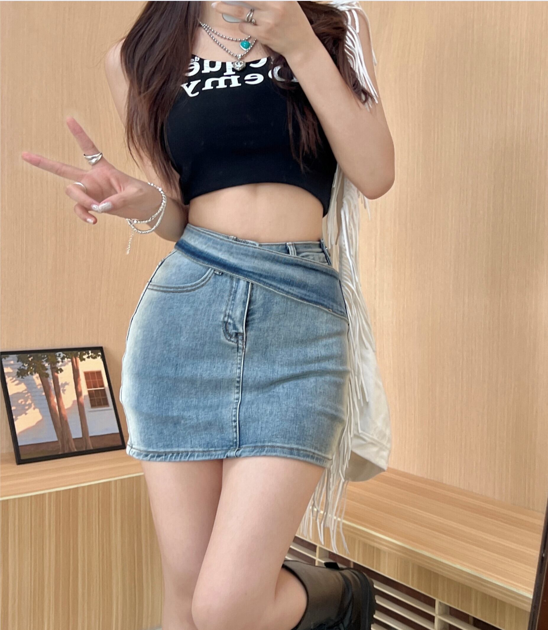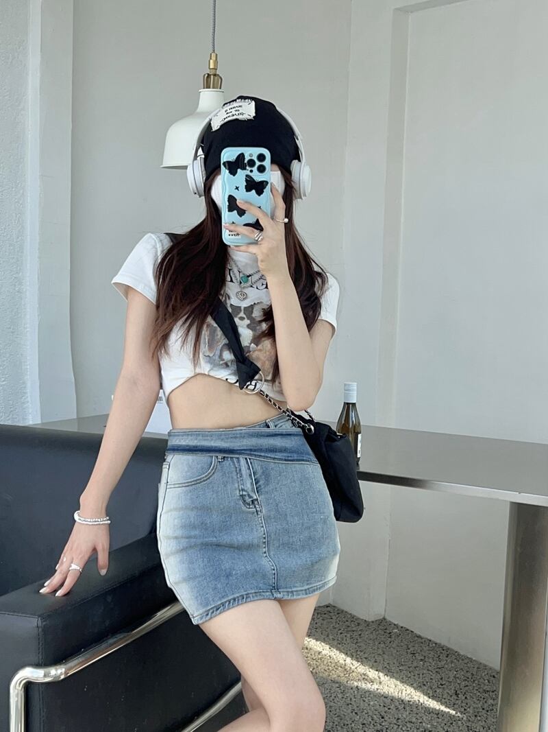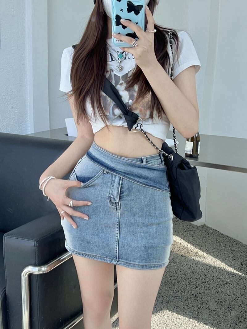 ブルーレトロデニムスカートパンツ女性夏香港スタイルAラインハイウエストセクシーオールマッチバッグヒップショートスカート ハイウェスト サマー 夏物 bstraw24886275371 | beaute25