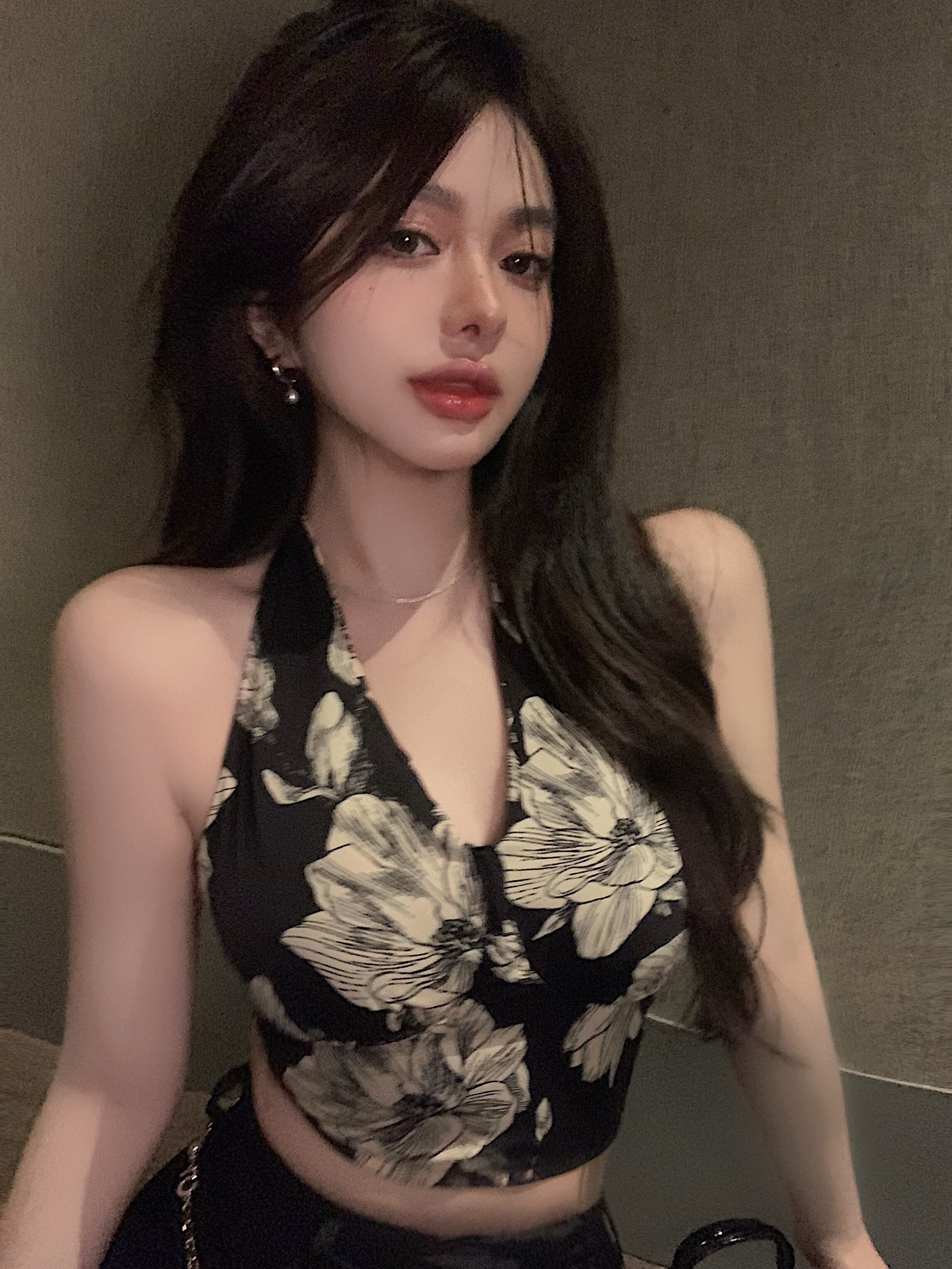スパイスガールズフローラルVネックノースリーブキャミソールベストサマーフレンチセクシーハンギングネックショートインサイドトップトップウェア 夏物 花柄 bstraw33772303484 | beaute25