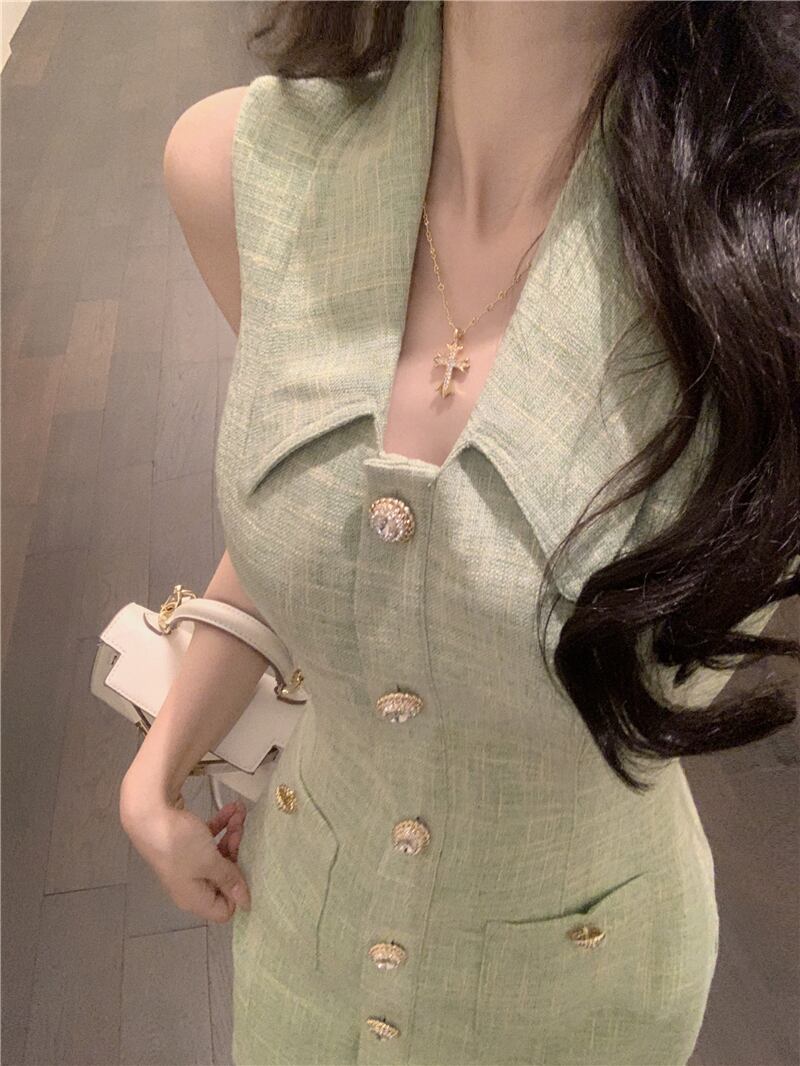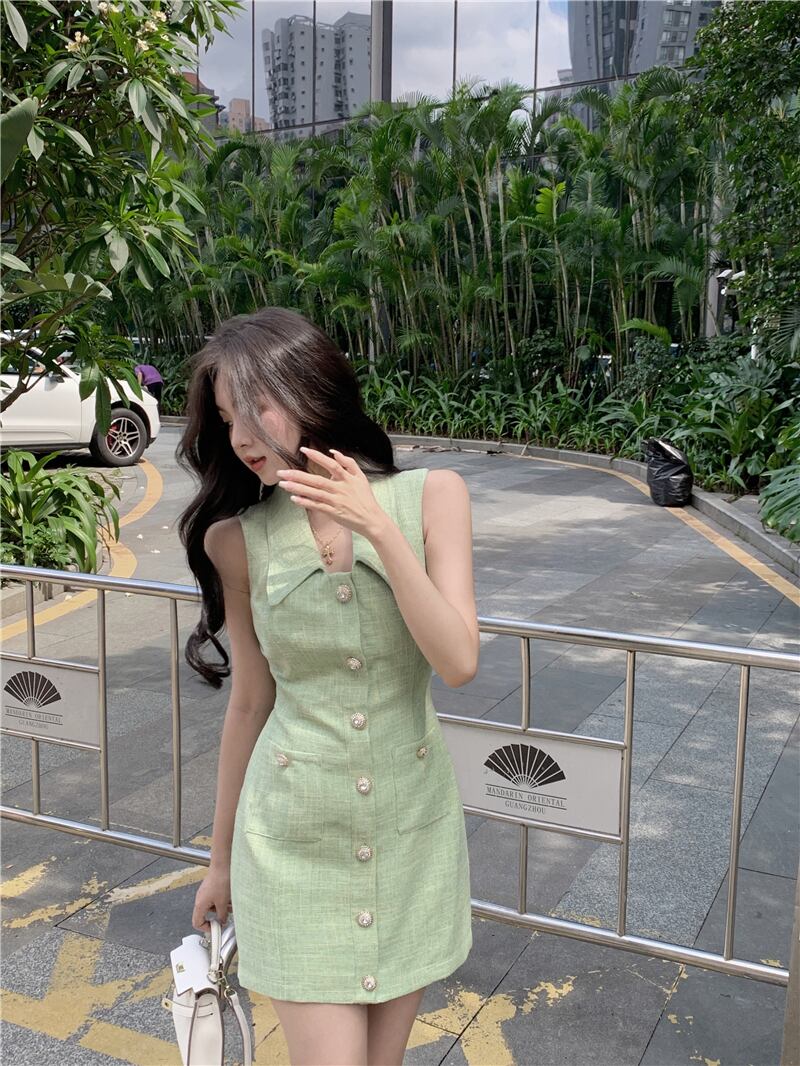 スウィートスパイスガールノースリーブドレスサマースモールフレグランスフレンチクオリティテンペラメントウエストシンショートスカート 大人ガーリー キュート カジュアル 夏物 bstraw27020839024 | beaute25