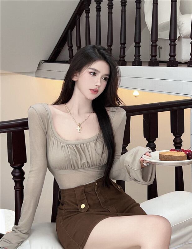 ピュアデザイアTシャツレディースサマーデザインセンスニッチショートスタイルスクエアカラーセクシーシックタイトフィット薄手長袖トップス ロング 夏物 スクウェア bstraw15230913949 | beaute25