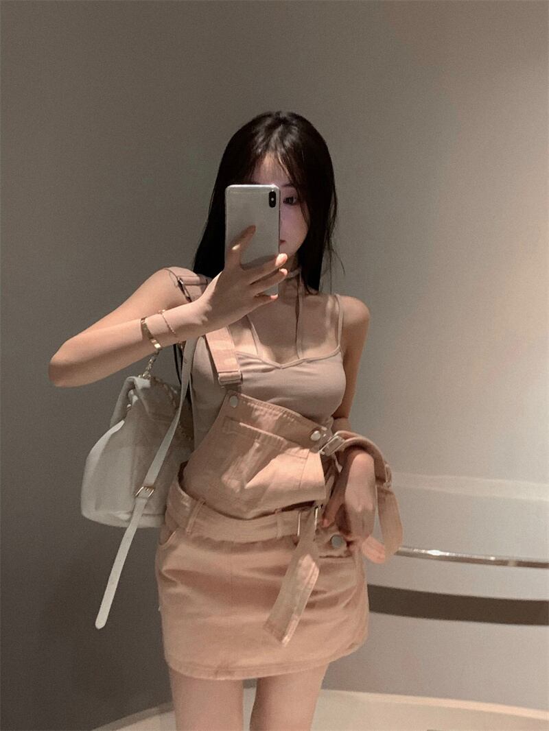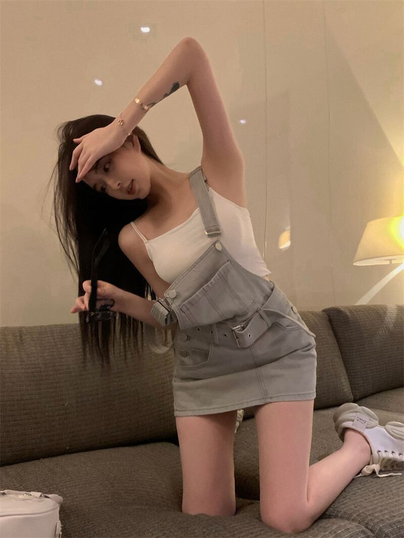 デニムサスペンダードレスレディースサマースモールエイジリデューシングショートスカートレトロハイウエストスリミングヒップスカート ハイウェスト 夏物 bstraw61405892486 | beaute25