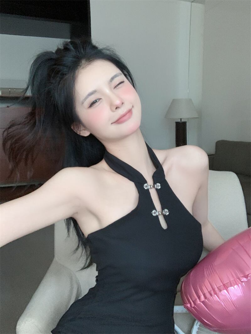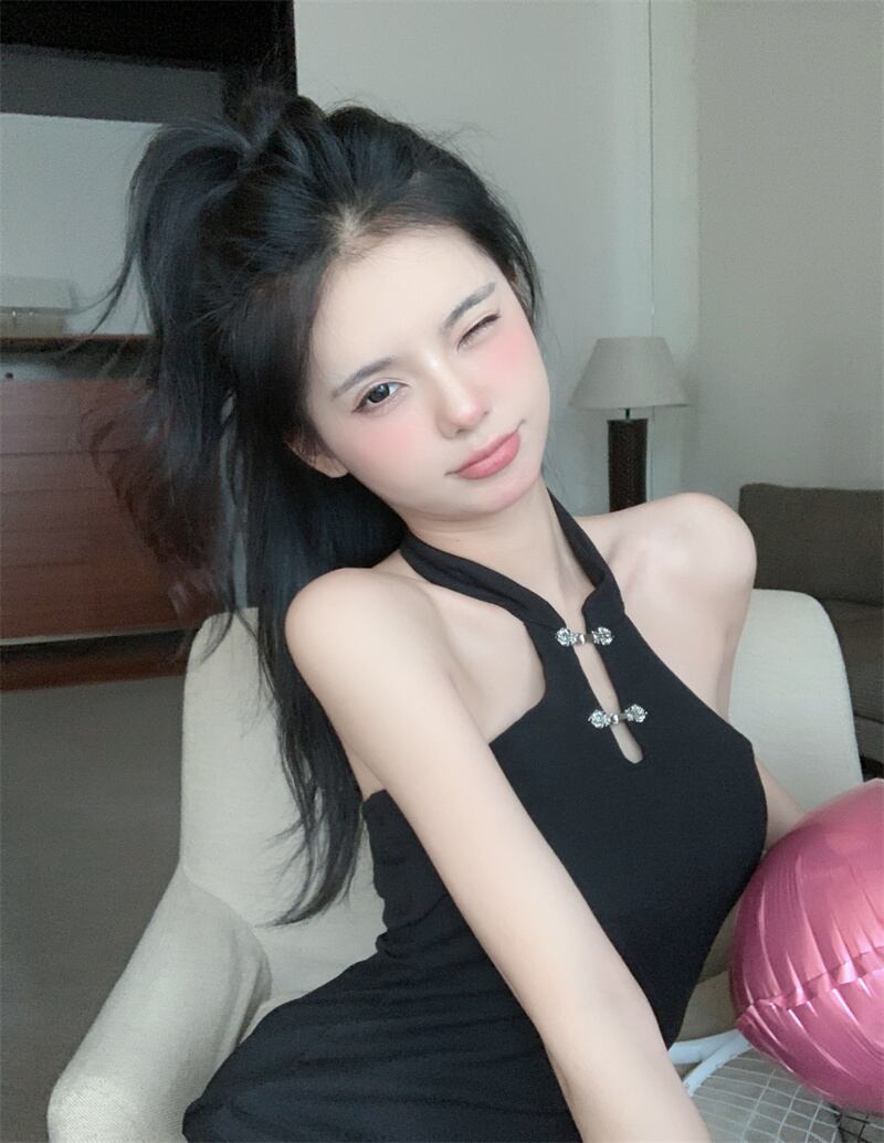 チャイニーズスタイルブラックスプリットドレス女性夏カントリースタイルシックなハンギングホルターネックセクシーバッグヒップショートスカート サマー 夏物 bstraw10245028107 | beaute25