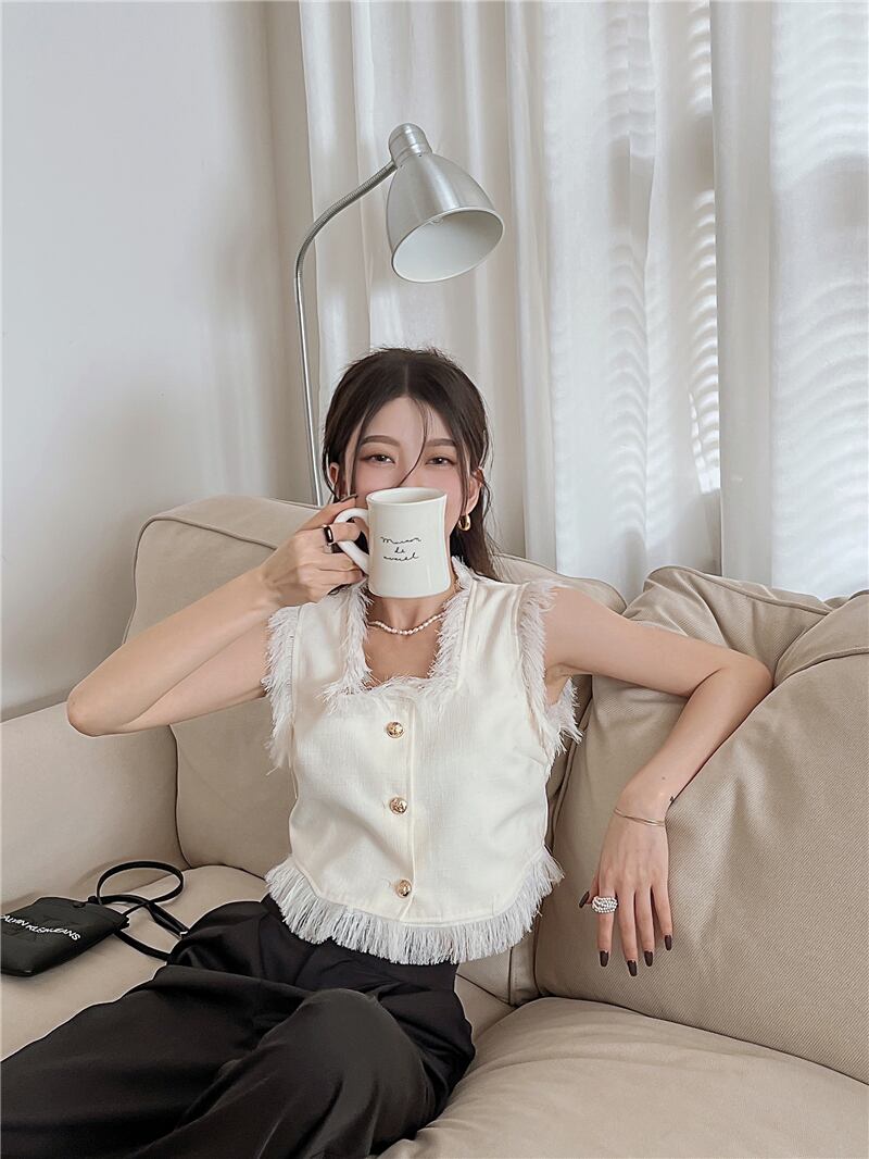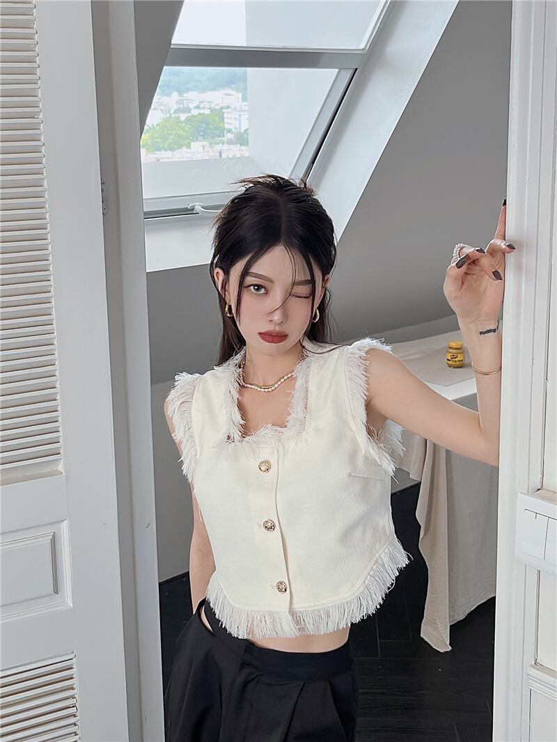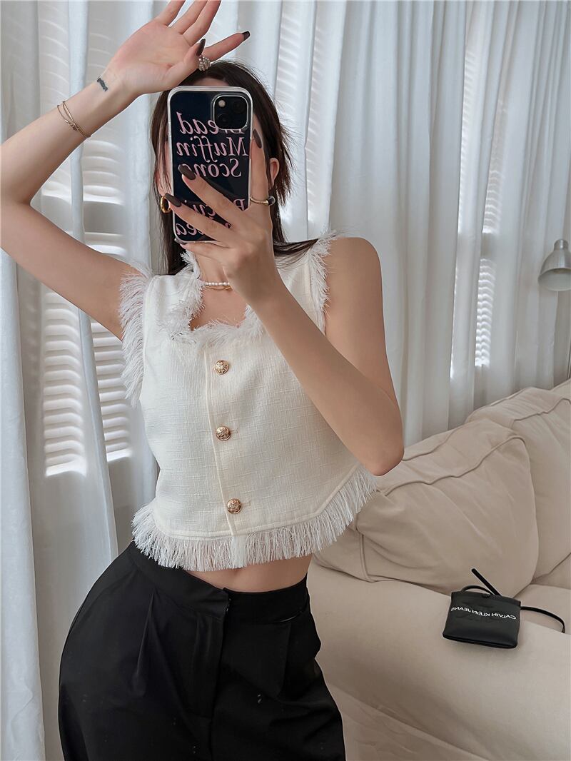 Xiaoxiangfengtelショートキャミソール女性の夏フランスの純粋な欲望風ルーズベストノースリーブトップアウターウェア サマー 夏物 ピュア bstraw91336405376 | beaute25