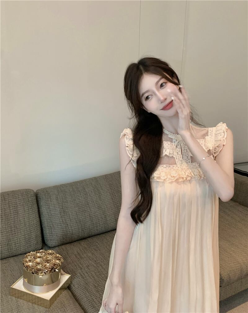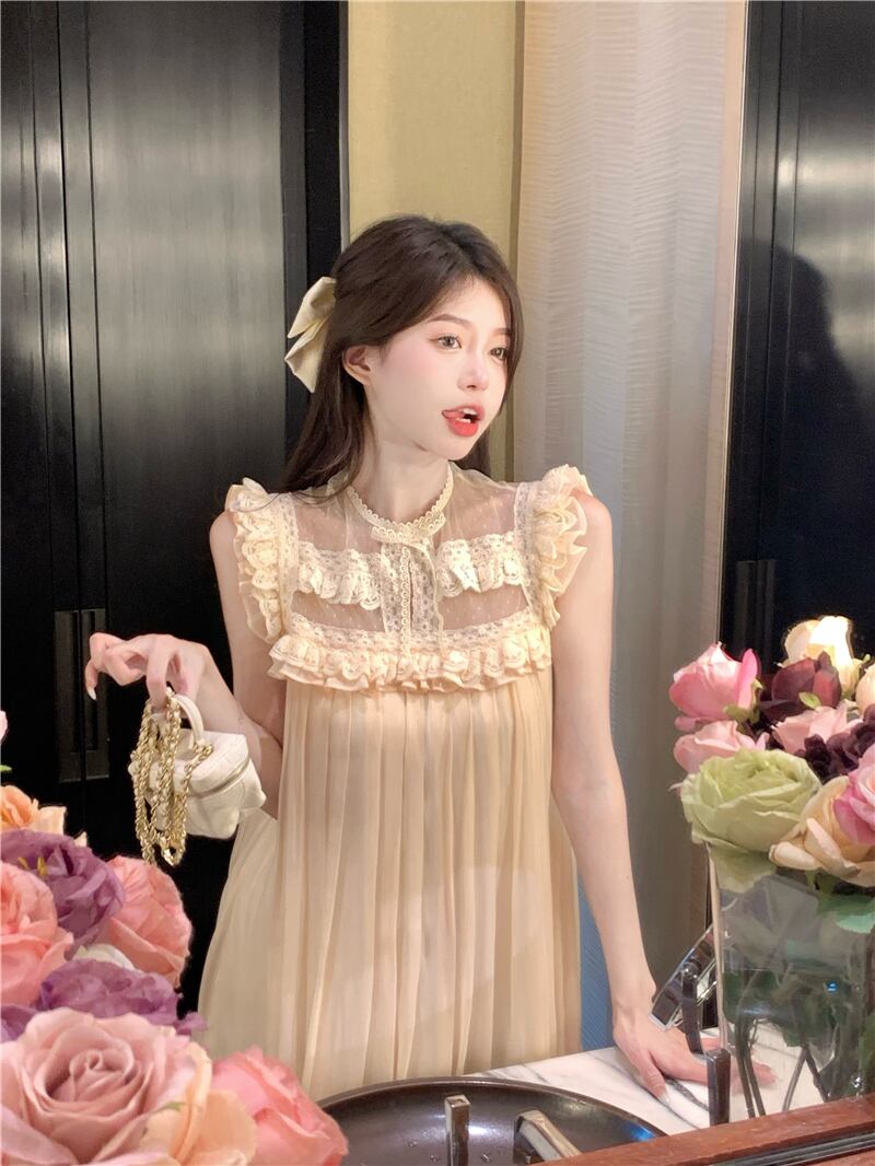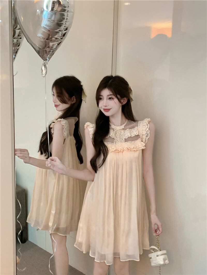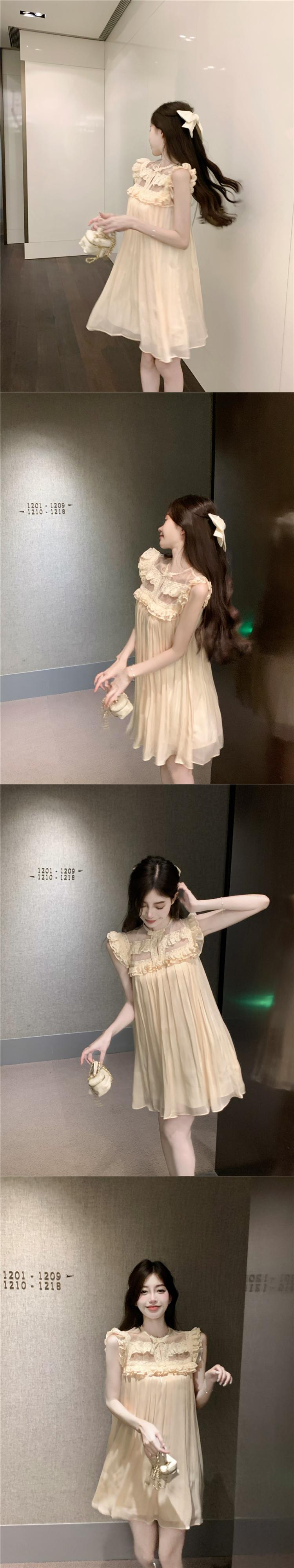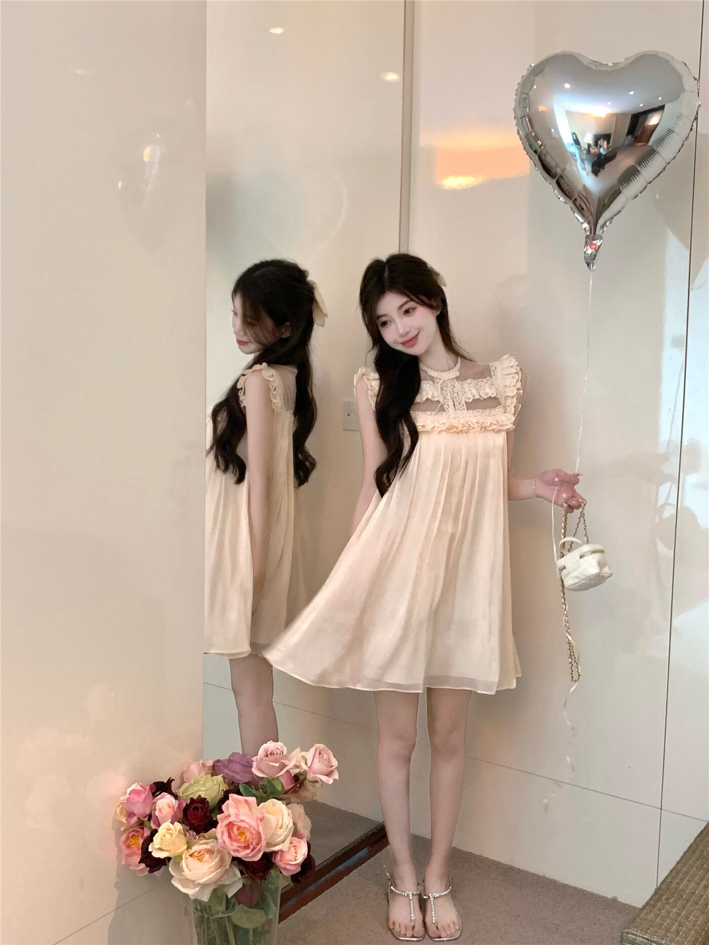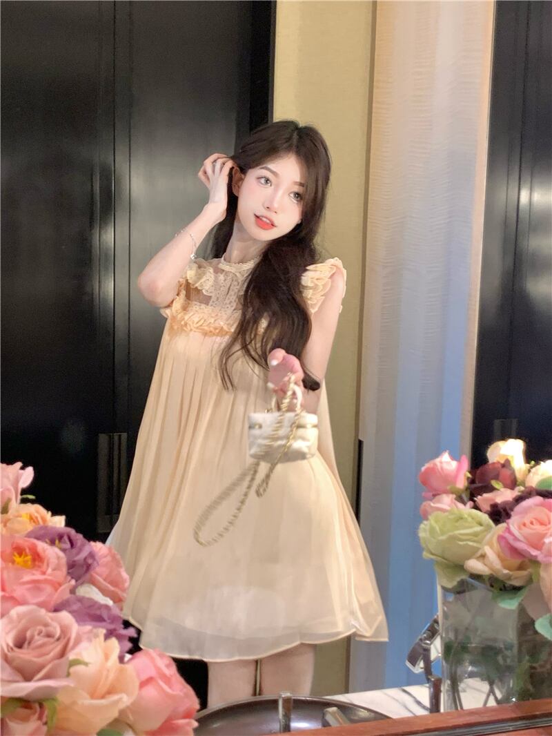 甘いレースのステッチシフォンドレスy夏の穏やかな風の年齢を減らす気質を感じる半袖ルーズショートスカート 大人ガーリー スウィート キュート カジュアル サマー 夏物 bstraw24651415531 | beaute25
