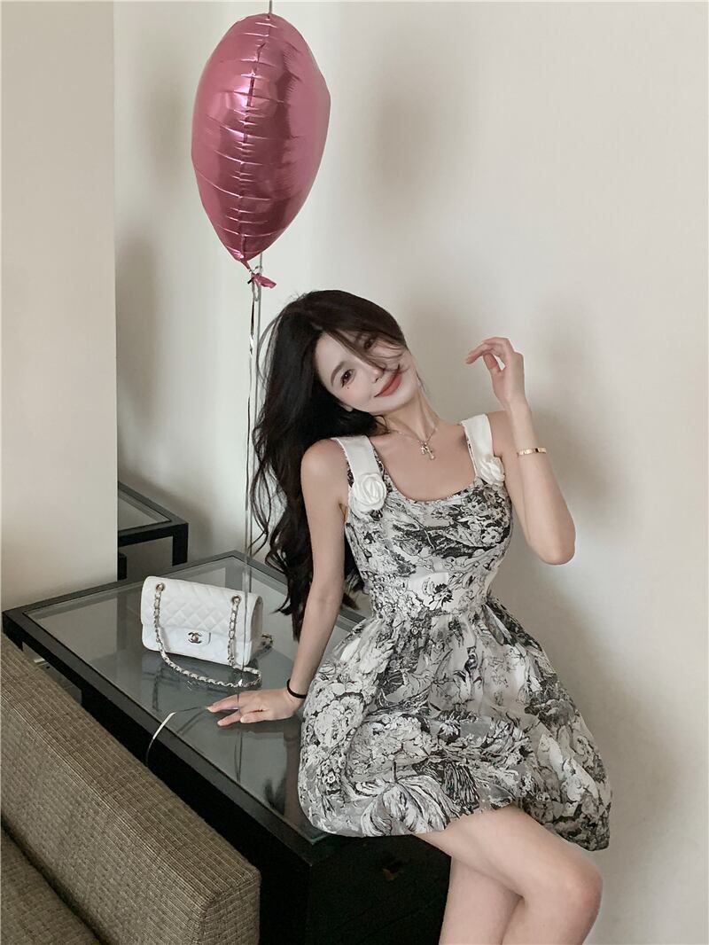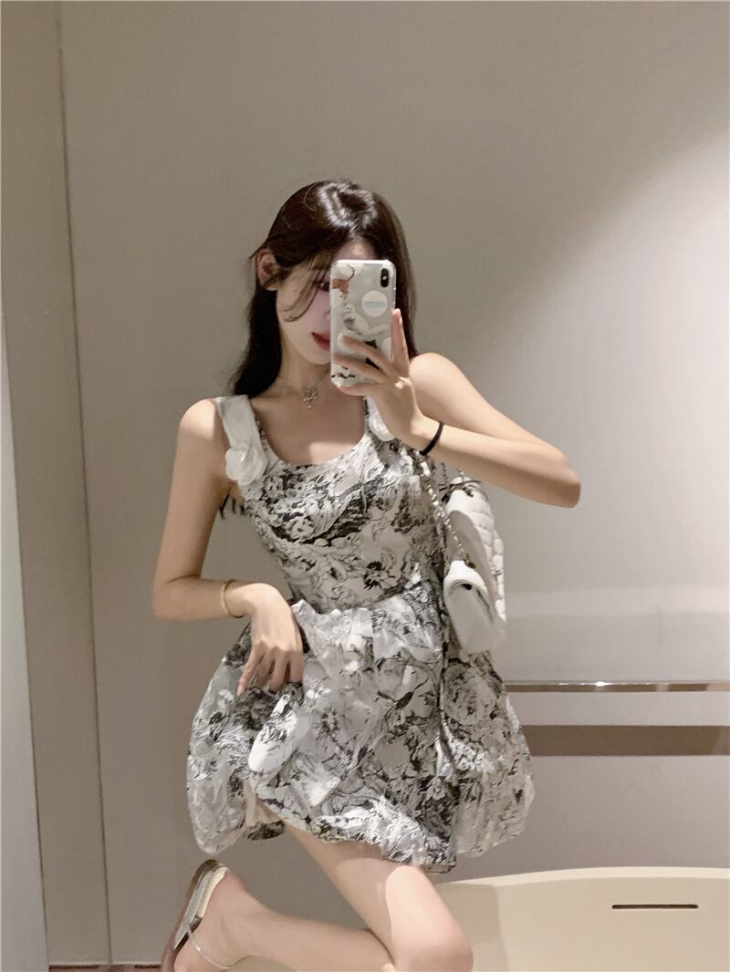 立体フラワーサスペンダーワンピースレディースサマーピュア欲望風スウィート気質ウエスト細Aラインショートスカート 大人ガーリー キュート カジュアル 夏物 フラワーデザイン bstraw93104910356 | beaute25