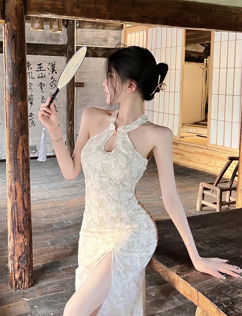 ナショナルスタイルの改良されたチャイナドレスホルタードレス女性の夏の新しい中国スタイルのノースリーブスリットセクシーな中空ロングスカート サマー 夏物 bstraw960602889 | beaute25