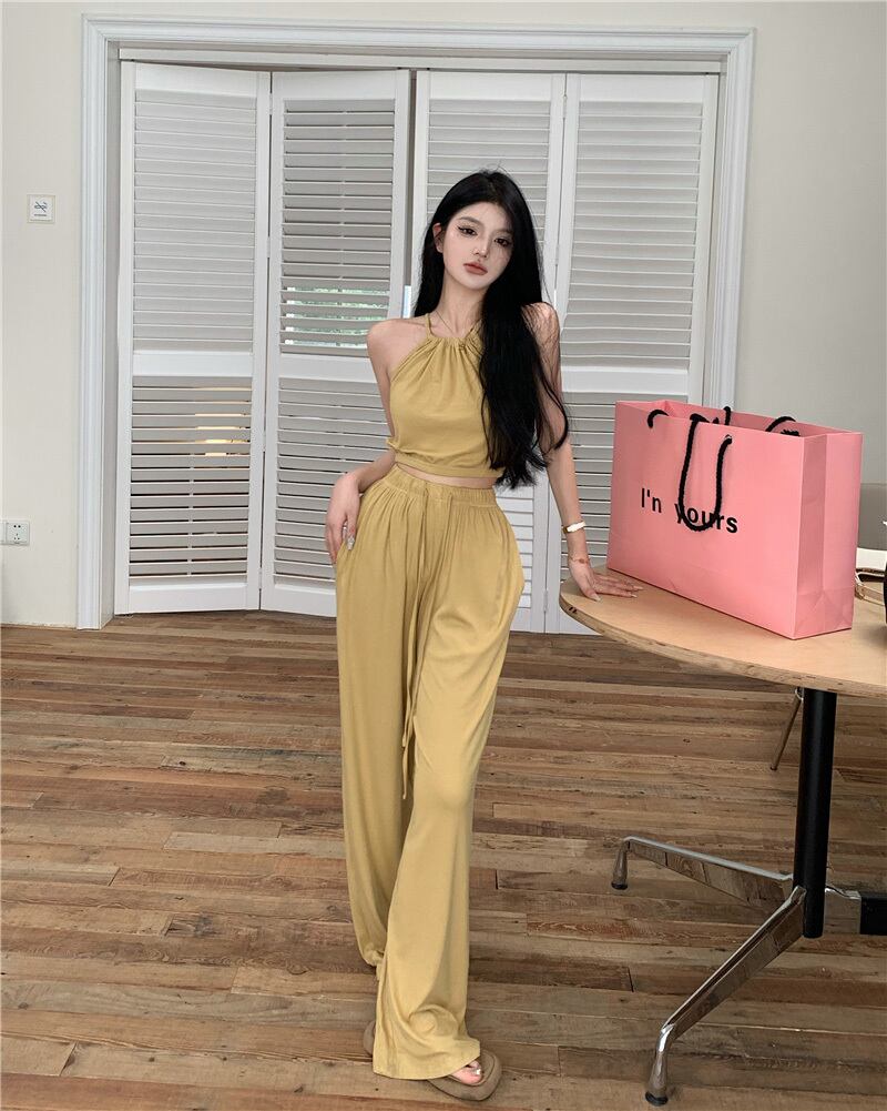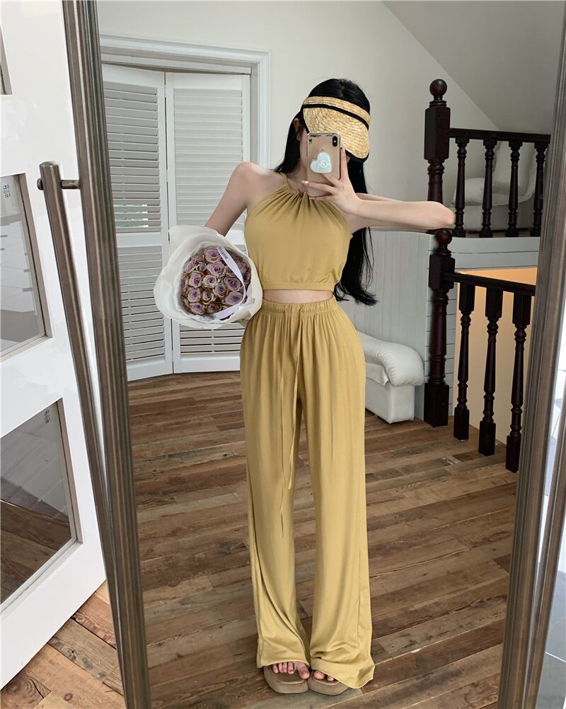 ピュアデザイアウィンドホルターネックキャミソールトップレディースサマースーツ巾着ハイウエストドレープカジュアルパンツツーピースセット ハイウェスト 夏物 bstraw76536806554 | beaute25