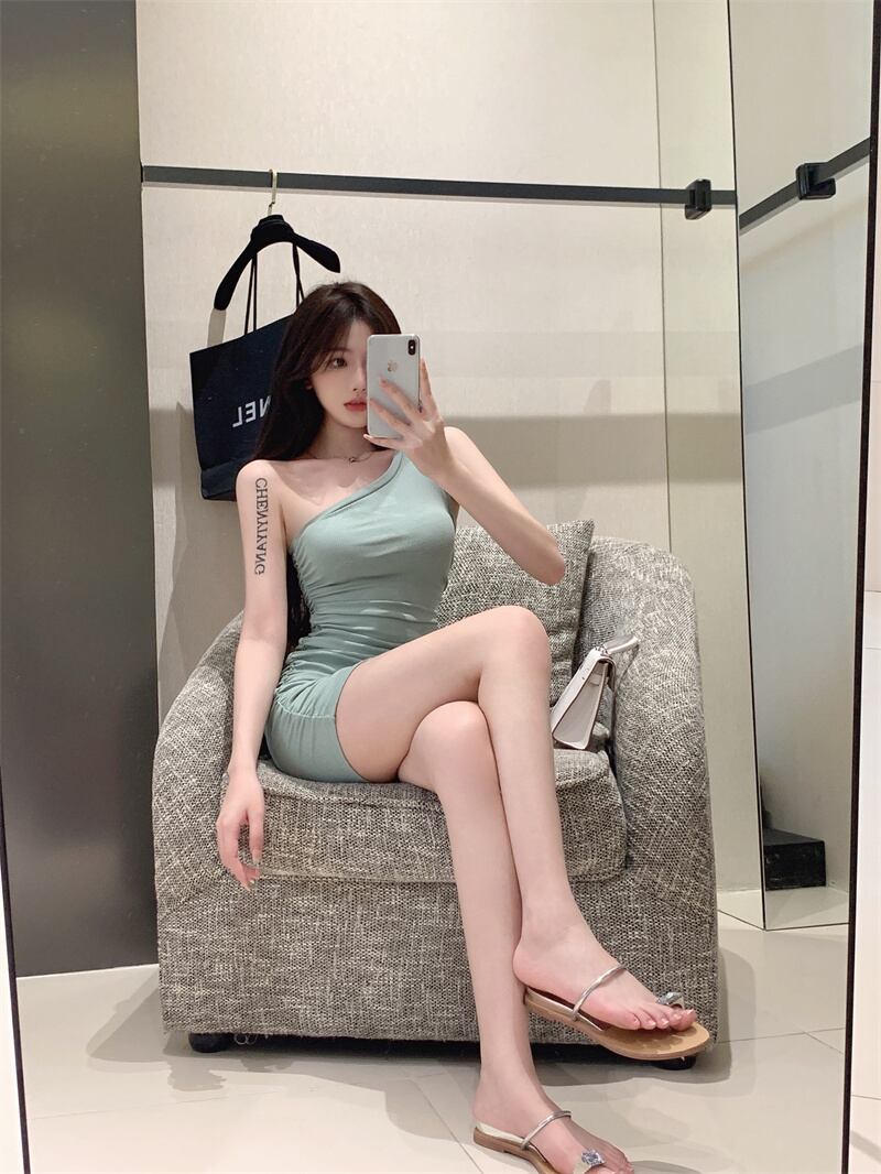 グリーンストレッチオフショルダーベストドレスレディースサマーピュアデザイアスタイルセクシープリーツスリムフィットスリムバッグヒップショートスカート 夏物 bstraw67855274662 | beaute25
