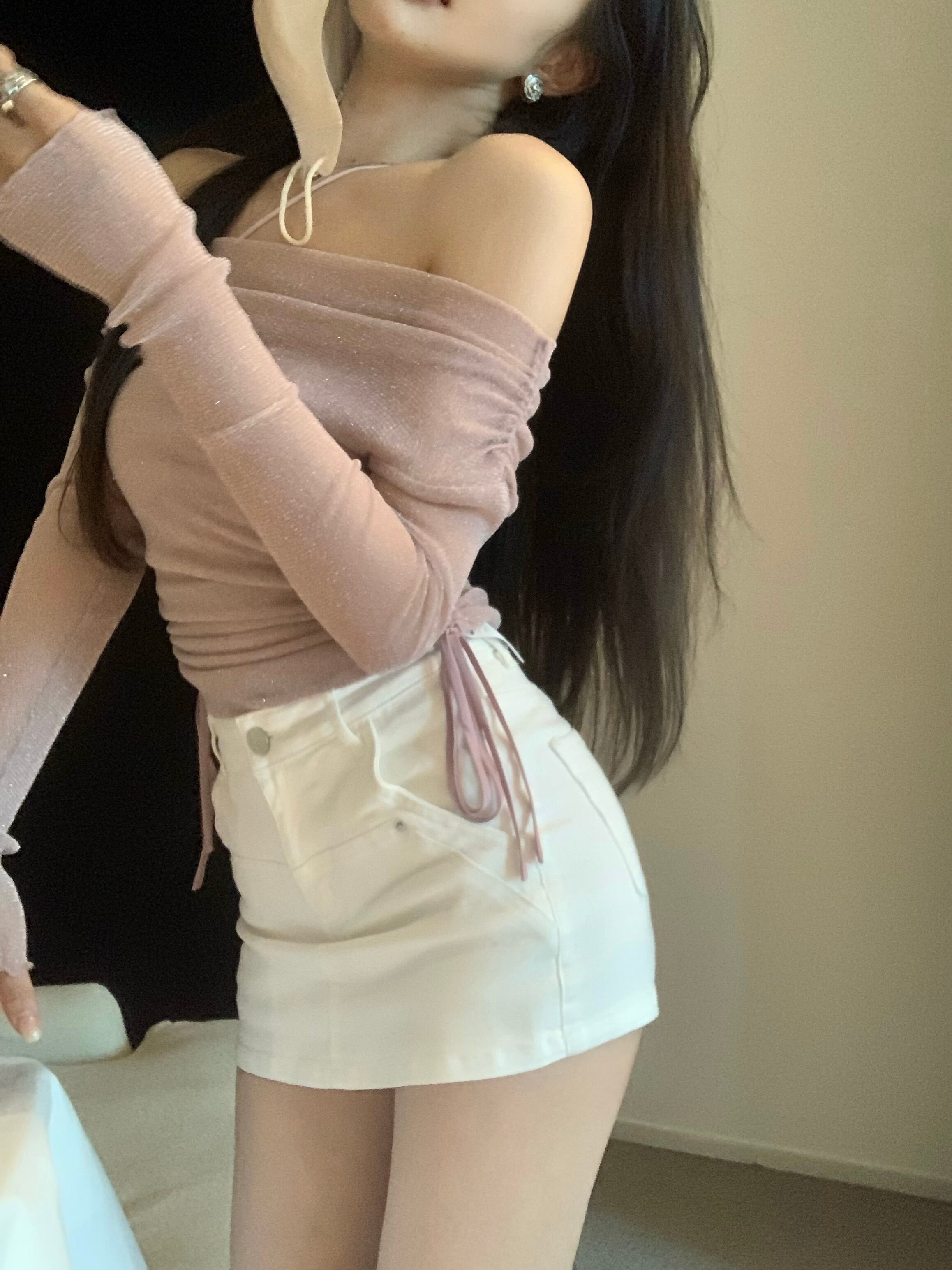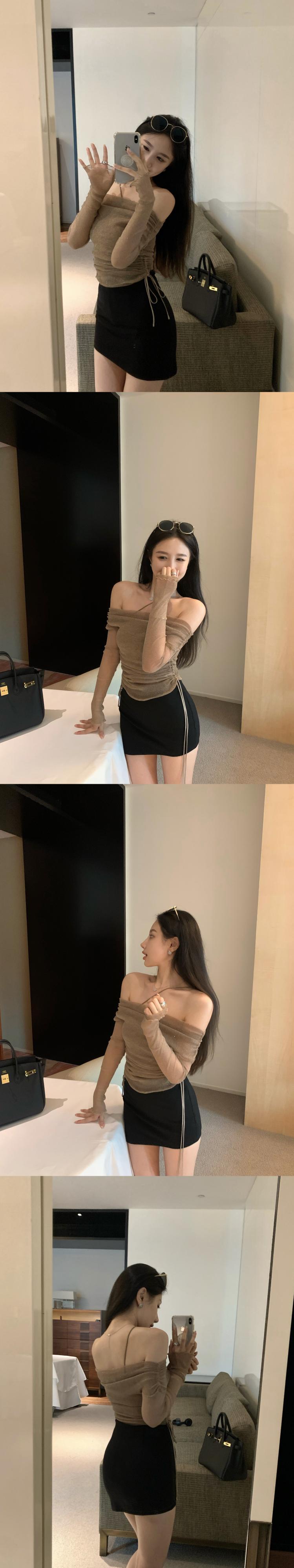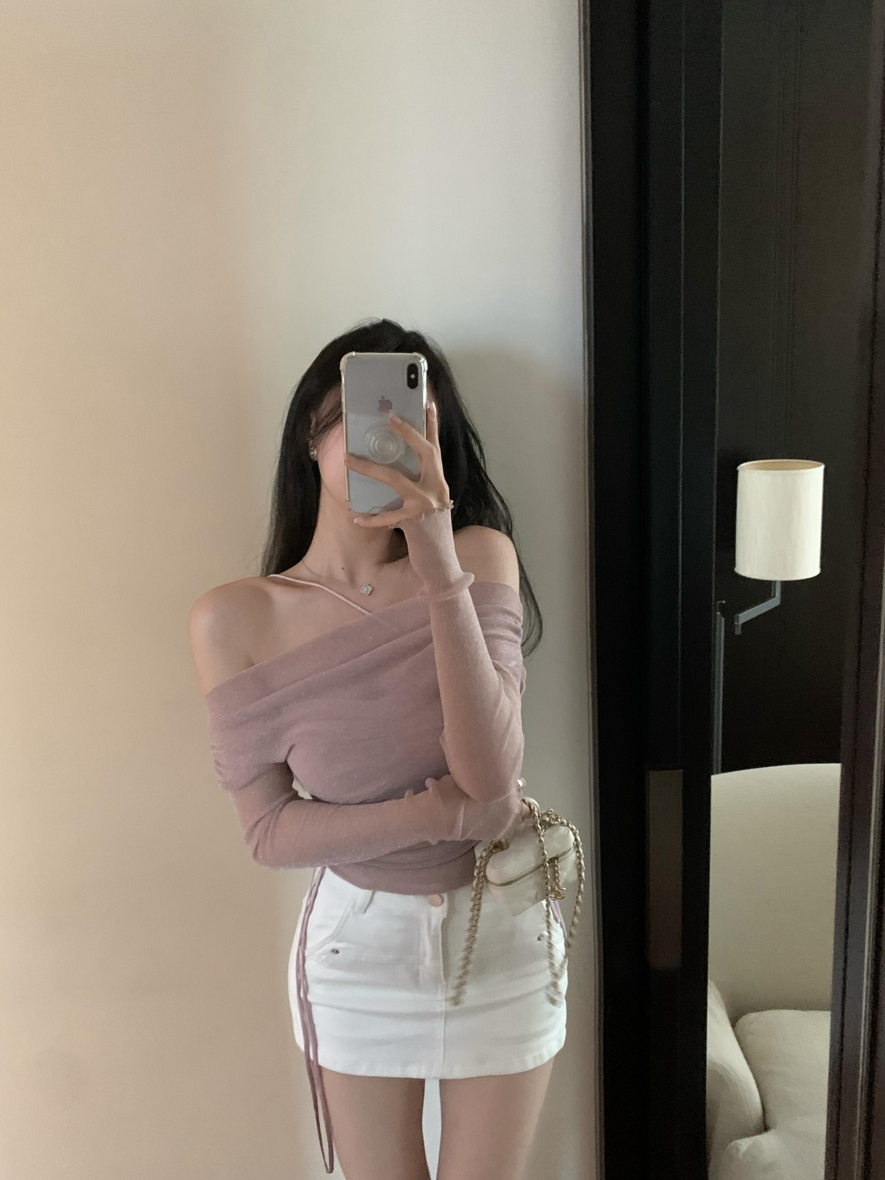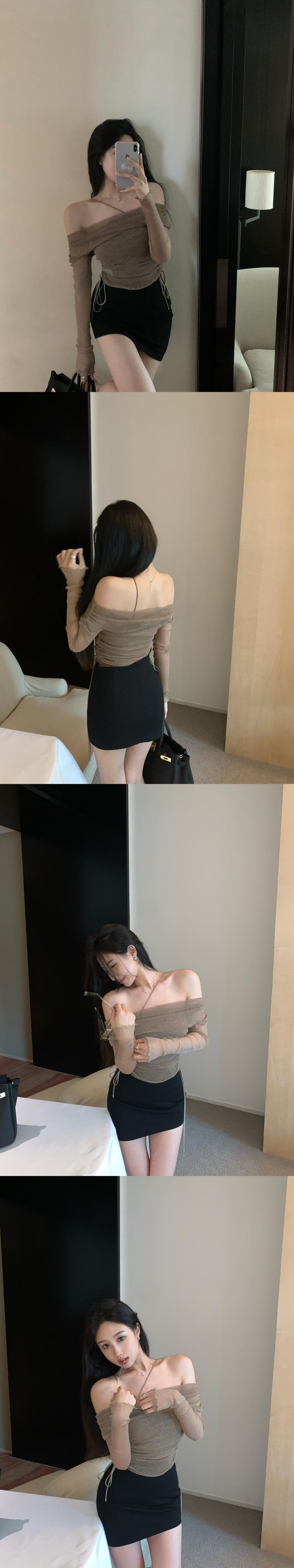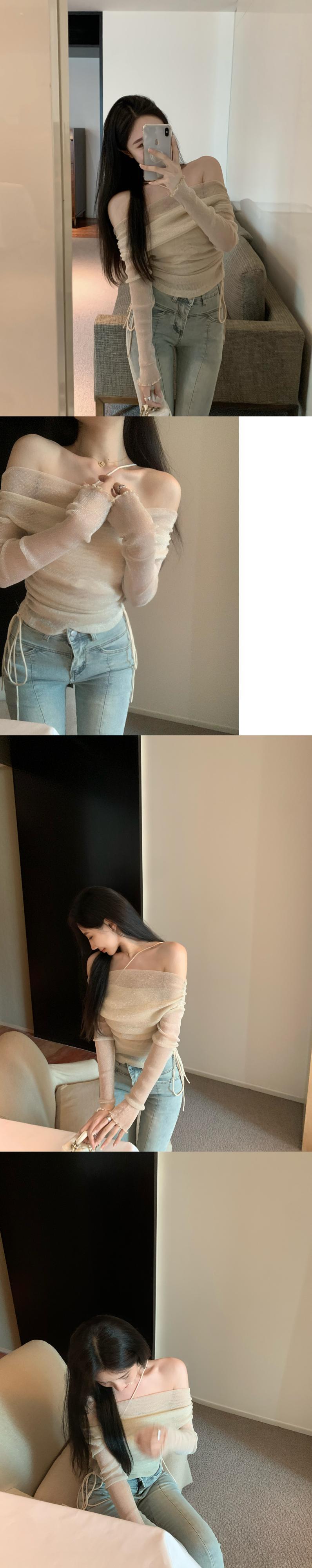 スウィートスパイスワンショルダー長袖ドローストリングシフォンシャツレディースサマーフレンチメッシュタイトタイト&シンミドル丈トップ ロング 大人ガーリー キュート カジュアル 夏物 bstraw53584762655 | beaute25