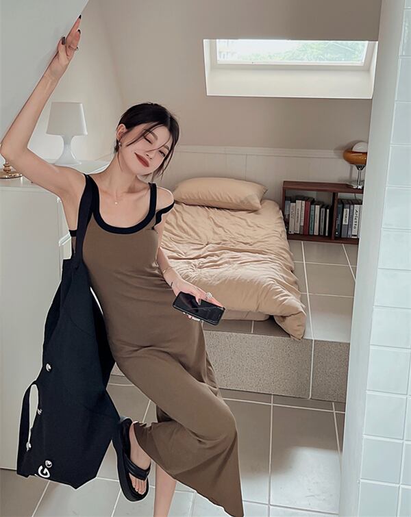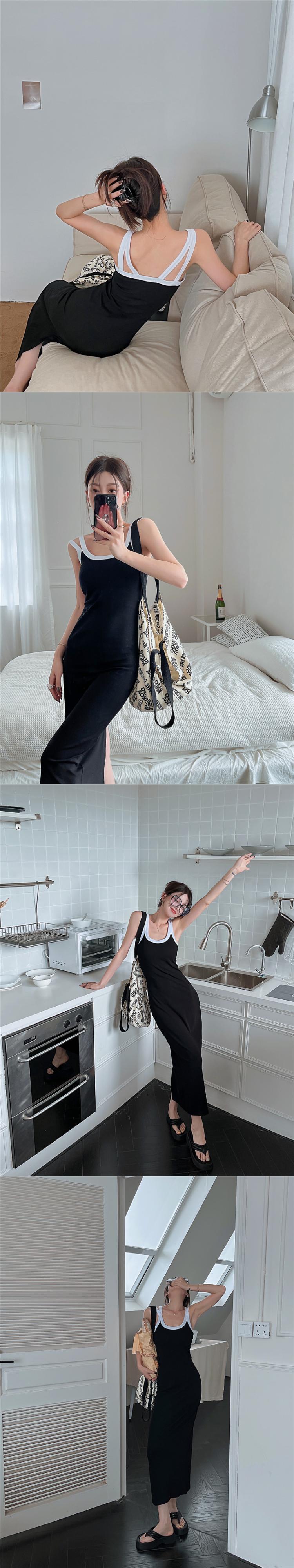 ブラックスクエアネックバックレススリングドレスレディースサマースパイスノースリーブスリムフィットスリットセクシーミドル丈スカート 夏物 スクウェア bstraw9129141318 | beaute25