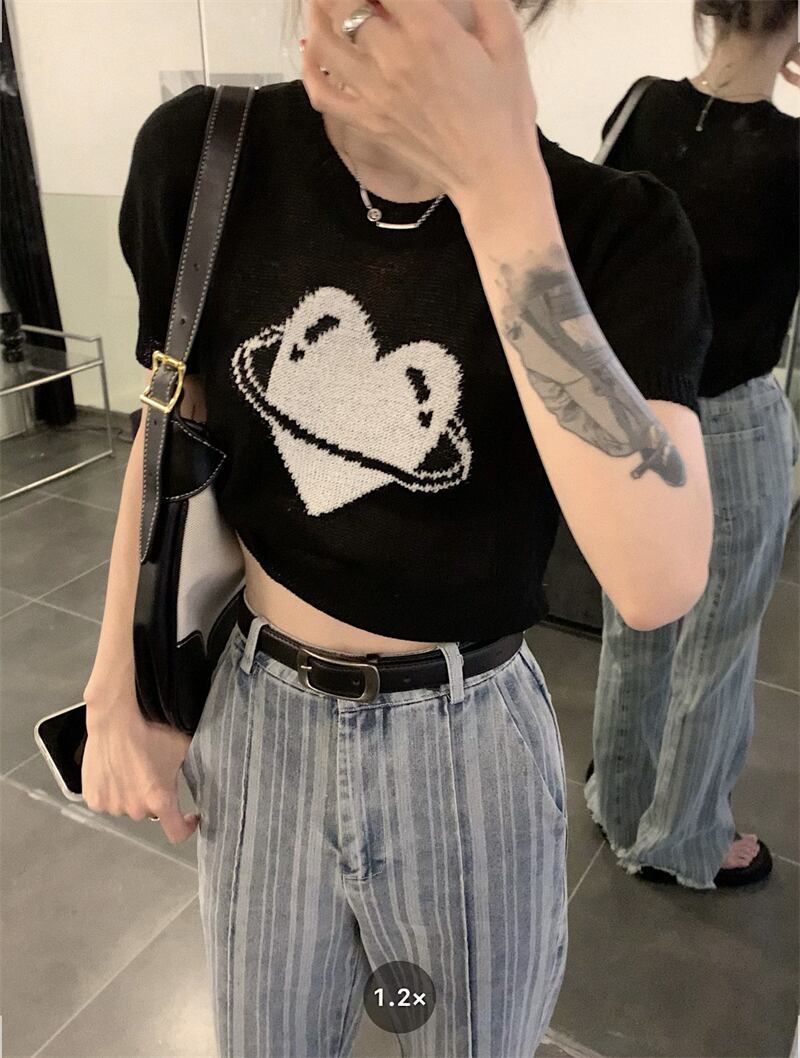 センスニッチラブニットセーターレディースサマーパフスリーブレトロスウィートスリムフィットショートトップ 大人ガーリー キュート カジュアル 夏物 bstraw45780658785 | beaute25